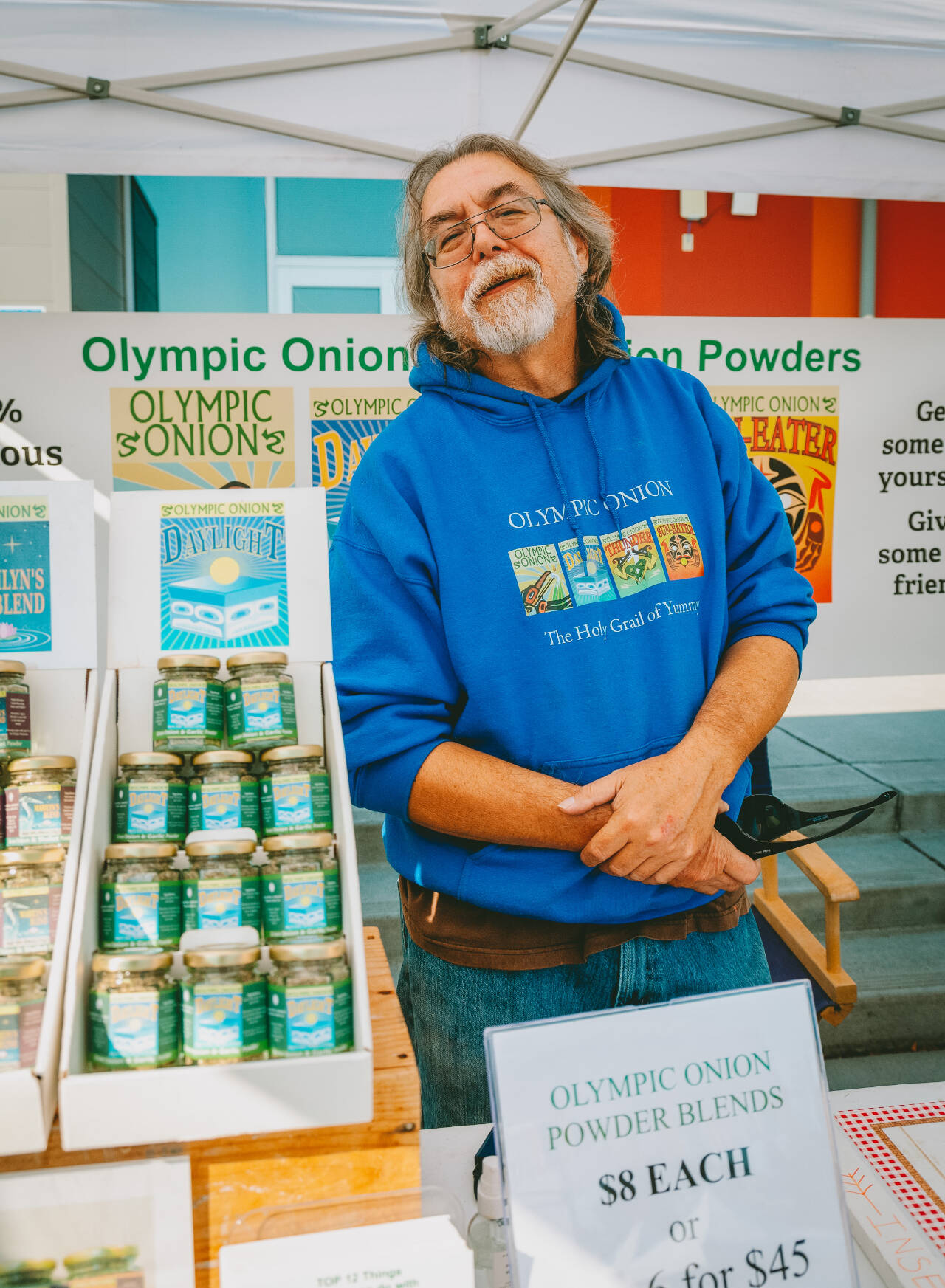 Photo courtesy of Sequim Farmers & Artisans Market/SFAM / Vince Gipson is not only known for his delicious onion powder, but he coordinates the music program, bringing guests like entertainment and good vibes each week to the market.