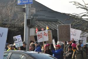 Community members rallied on Sunday, Jan. 25 in downtown Sequim to express their opposition to violence following the…