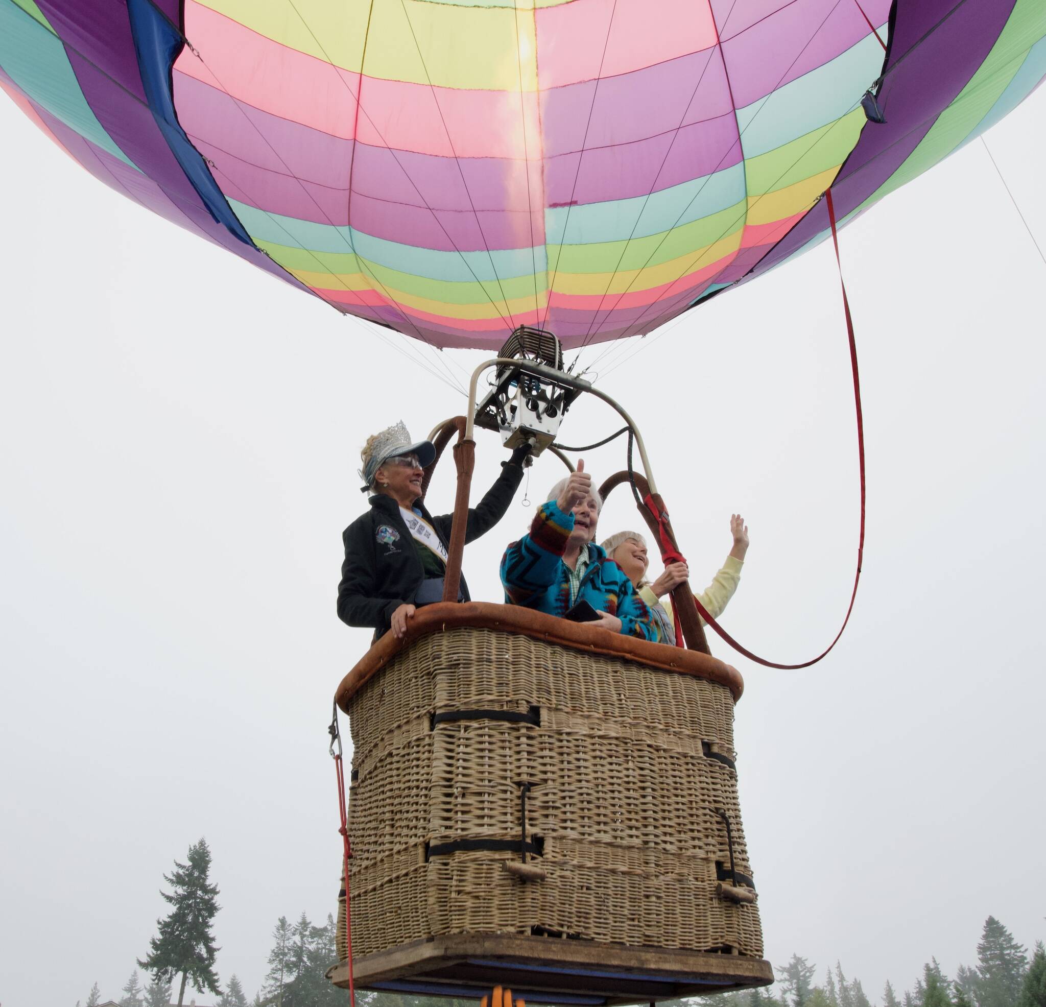 Captain Crystal Stout, left, takes Sunland residents Susan Drake, center, and Drake’s sister Kim Koons aloft in her tethered hot air balloon during a community picnic Saturday, Sept. 6.