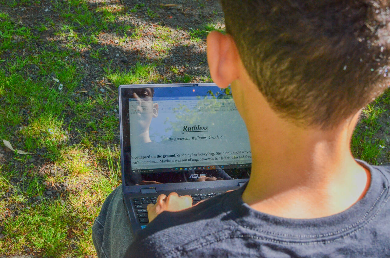 At Carrie Blake Community Park, before a Sequim Middle School Band concert, Sequim sixth-grader Anderson Williams reflects upon winning first prize in a local writing contest: “It felt pretty cool. I wasn’t really expecting it; I finished it last minute.”