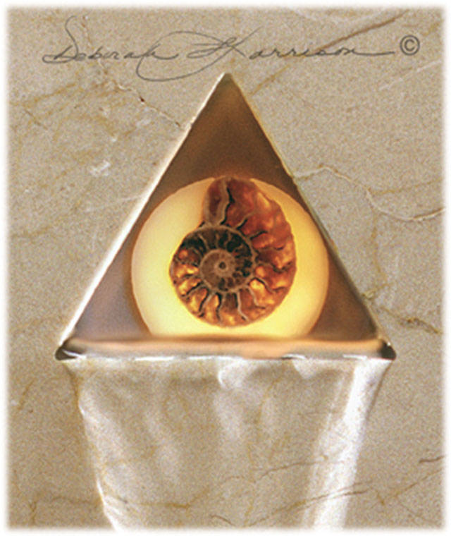 The gallery’s “Roots of Fertility: Natural Geometry” exhibit featured artists for the month are fractal artist Dan Brewer and Deborah Harrison, mixed-media glass sculptor.