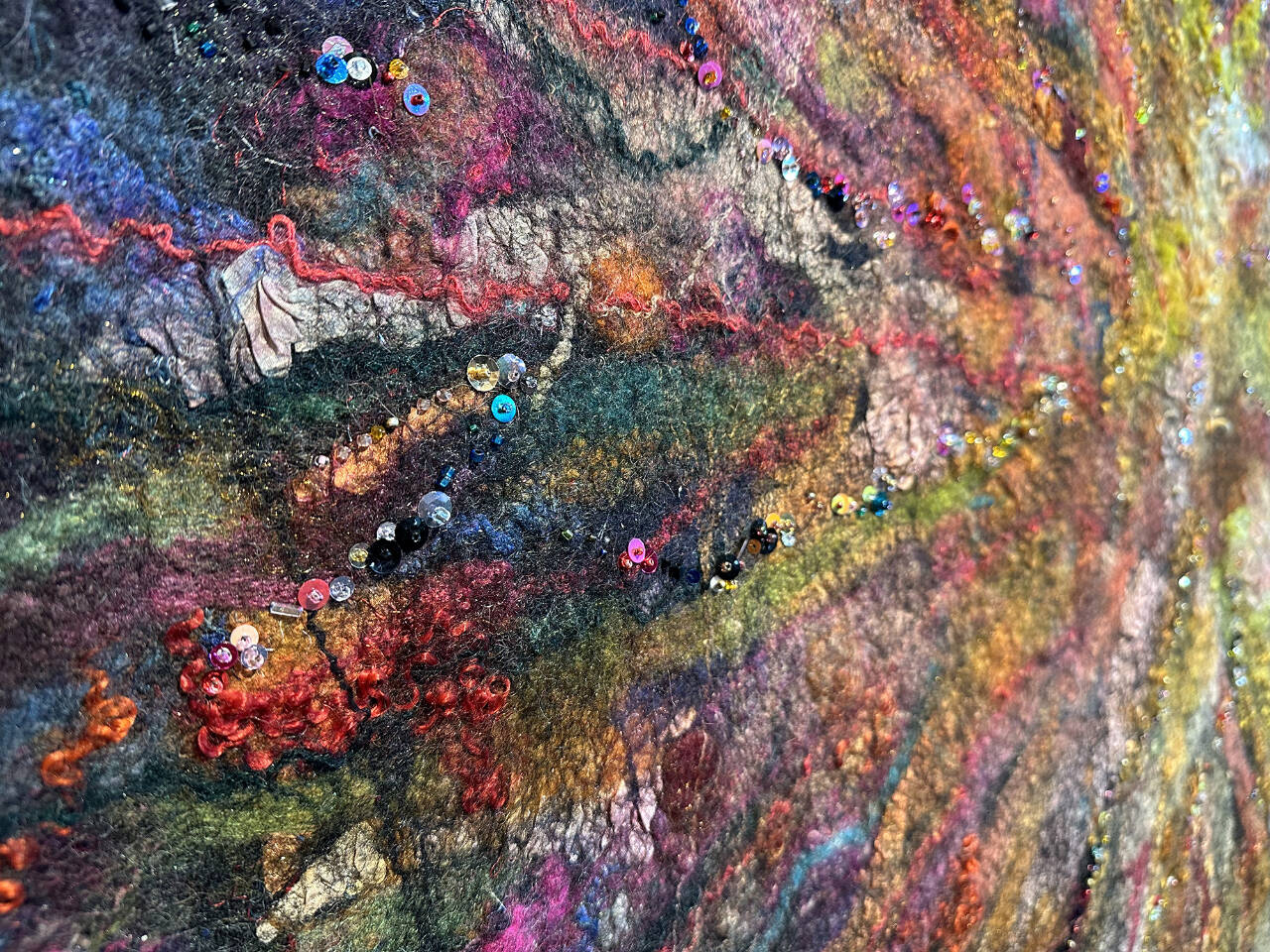 Artwork by Lora Armstrong / A detailed shot of “Kaleidoscopic Super Nova” by Lora Armstrong, a featured artist at the 19th-annual North Olympic Fiber Arts Festival fiber arts exhibition, “Sublime Marvel – Splendor, Enterprise, & Awe” at Sequim Museum and Arts, 544 N. Sequim Ave.