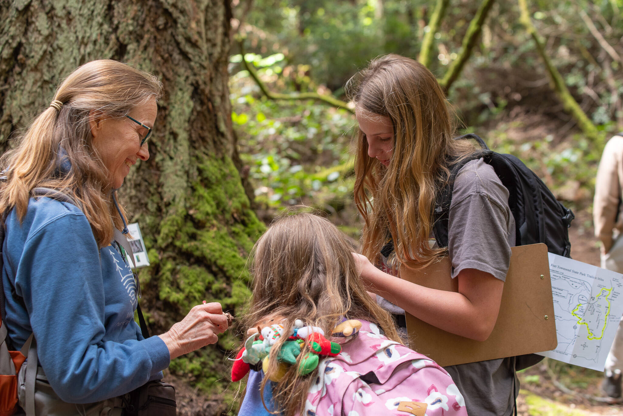After leaving the Discovery Bay Wild Bird Rescue, the children visited Fort Townsend State Park. Guided by teachers Heidi Pedersen and Nellie Bridge, as well as parents, they followed the Botany Walk through an old-growth forest of western red cedar and Douglas fir.