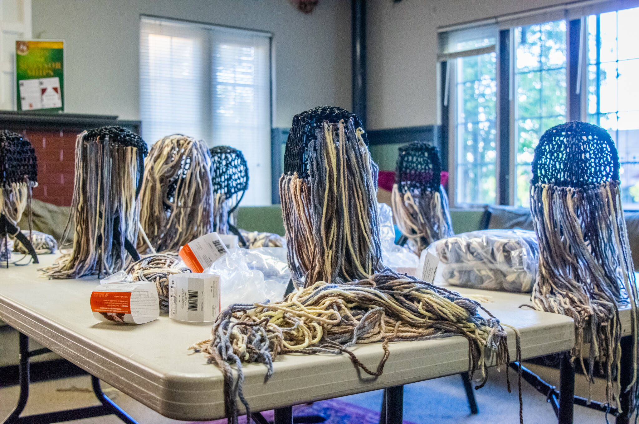 The set design includes dozens of cast member-made pieces: yarn wigs, a giant black spider, 10-foot trolls with painted faces and gargantuan hands, recyclables repurposed into things like barrels, jugs and a pepper shaker, the door to No. 1 Bagshot Row and a small puppet show frame and patchwork curtain all point to the countless hours the more than 50 member cast and crew devoted to the props for this play.