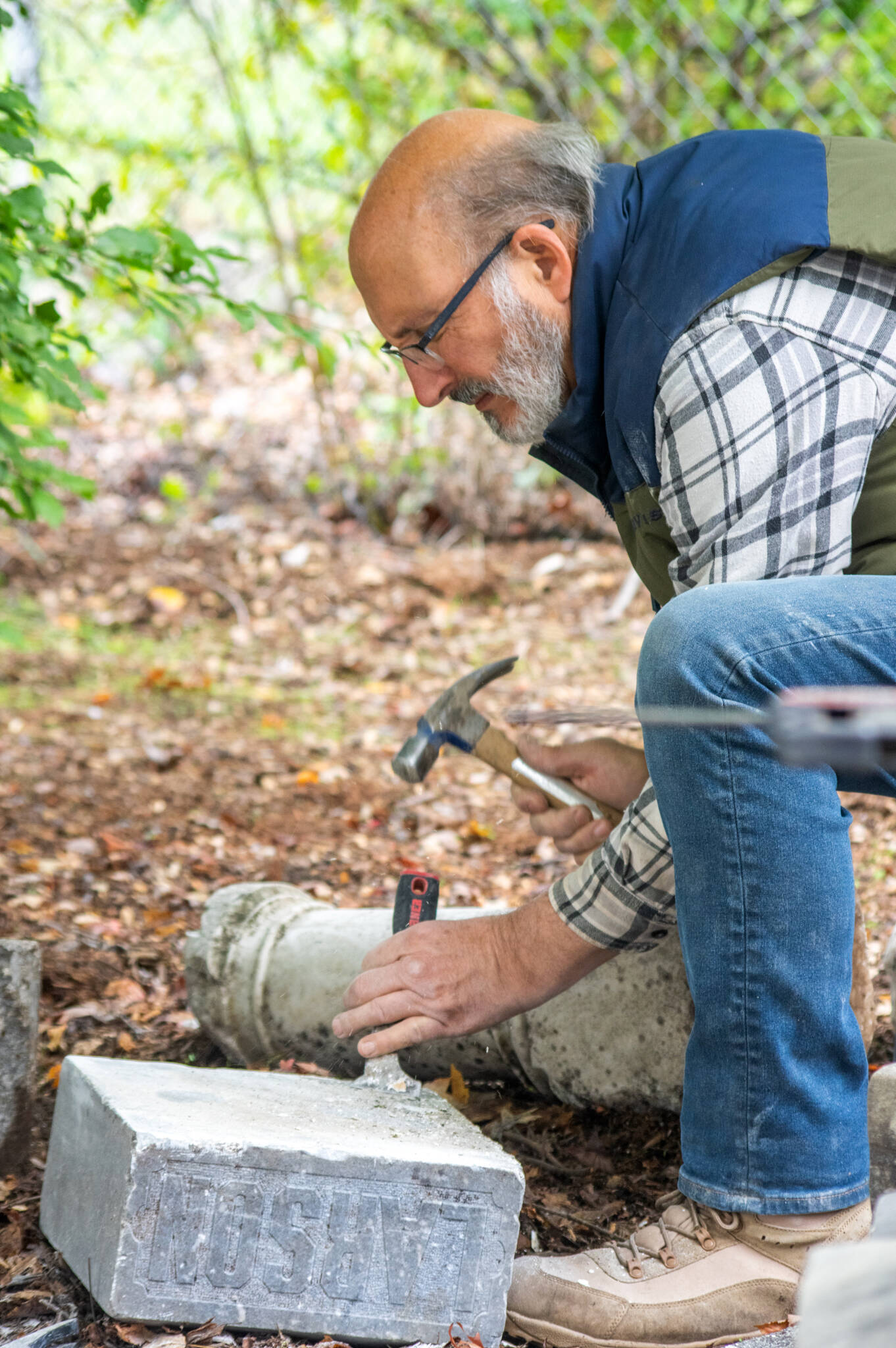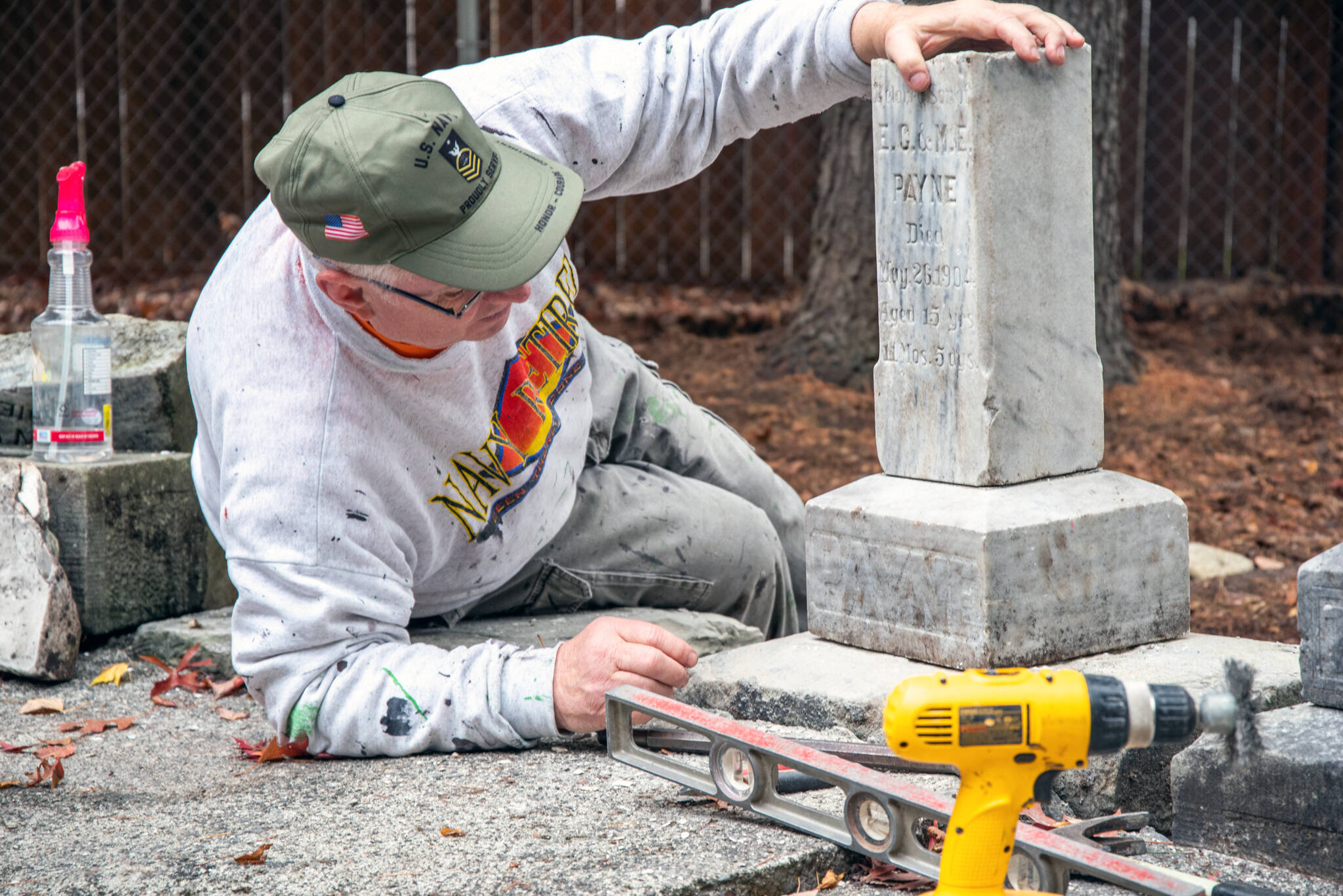 Last Saturday, a group of about a dozen volunteers — including 3-year-old Addy — gathered to reattach headstones to matching bases and continue cleaning and piecing together broken headstones.