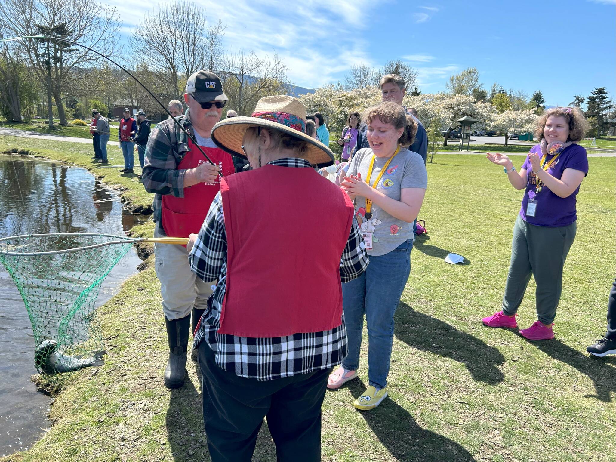 Families had access to free fishing rods, bait and support from the North Olympic Peninsula Chapter of Puget Sound Anglers on April 19. The group also hosted Life Skills students from Sequim School District the day before.