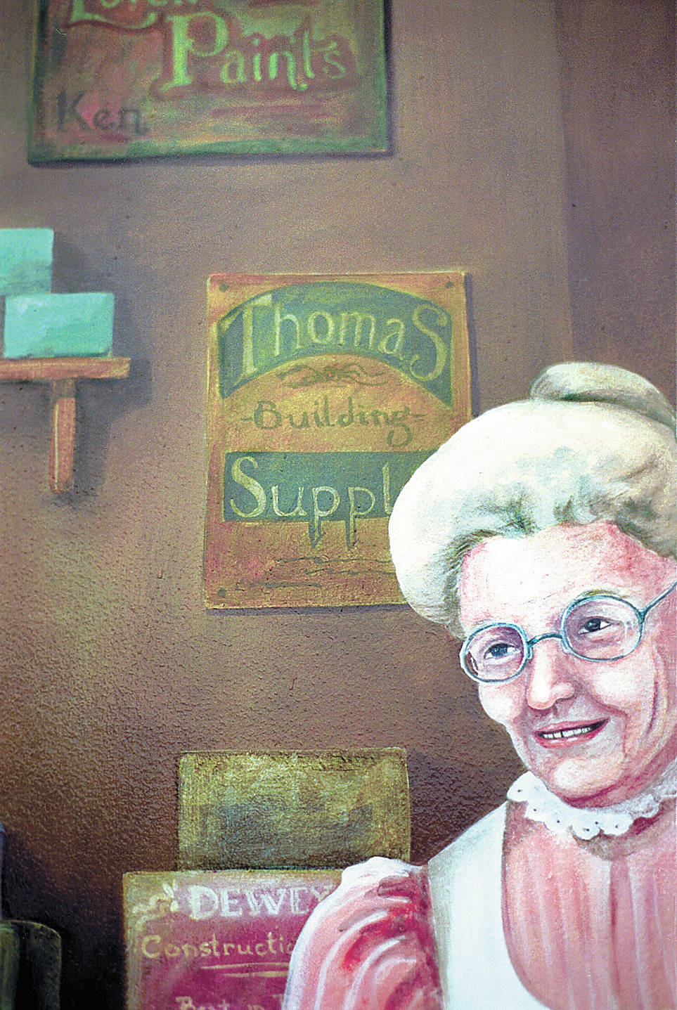 Kopp said that more than 30 portraits of people both living in town at the time and some of their ancestors wound up in the finished mural. She added that it took her 13 months in all to complete the work on the mural, which lead to some logistical challenges in finding ways to work around inclement weather during the fall and winter.