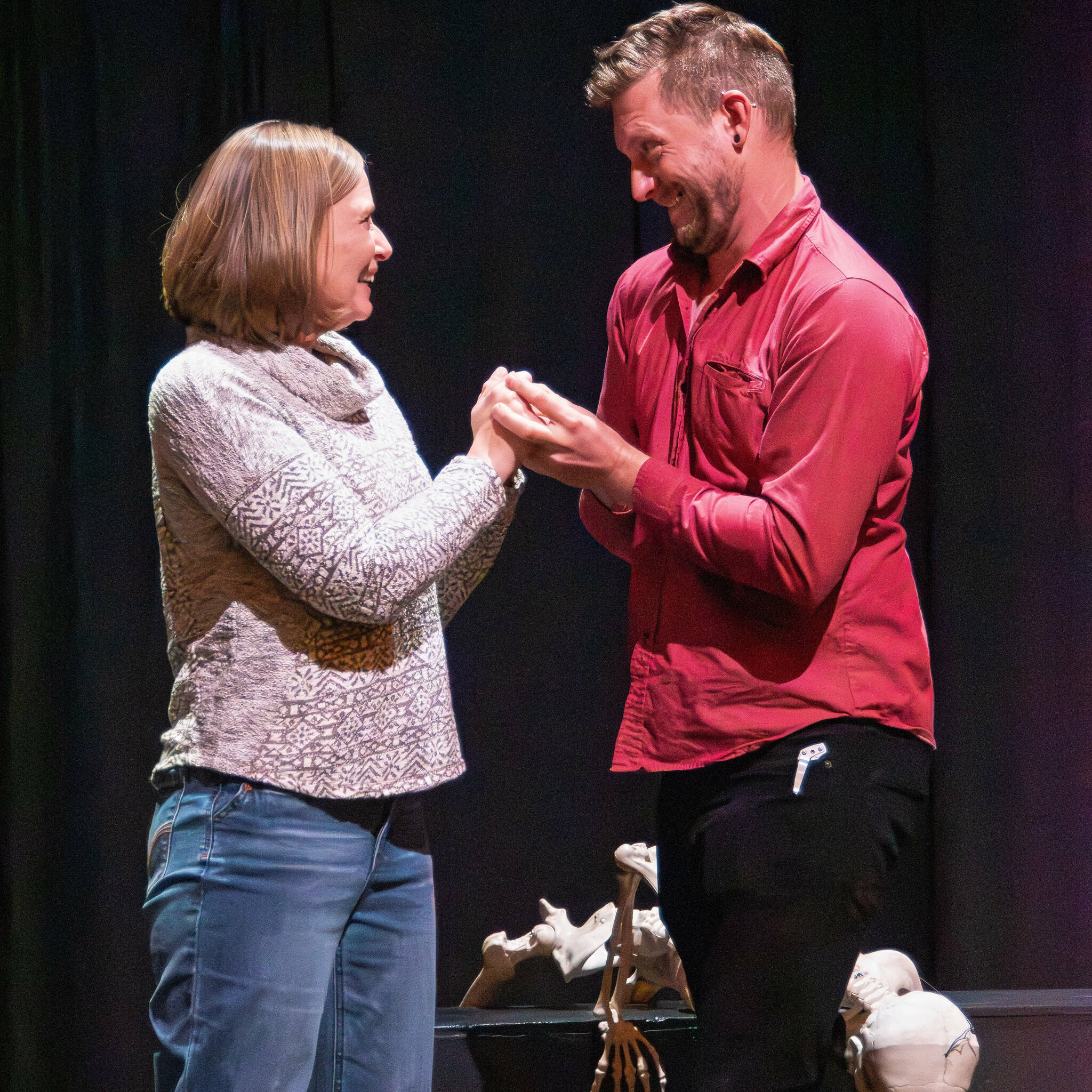 Photo by Monica Berkseth Rebecca Maberry and Justin Stapleton rehearse a scene in “Backtalk,” written by local playwright Susan Macedo. It is one of eight short plays featured in OTA’s New Works Showcase, which will run Fridays, Saturdays and Sundays from Nov. 14-23.
