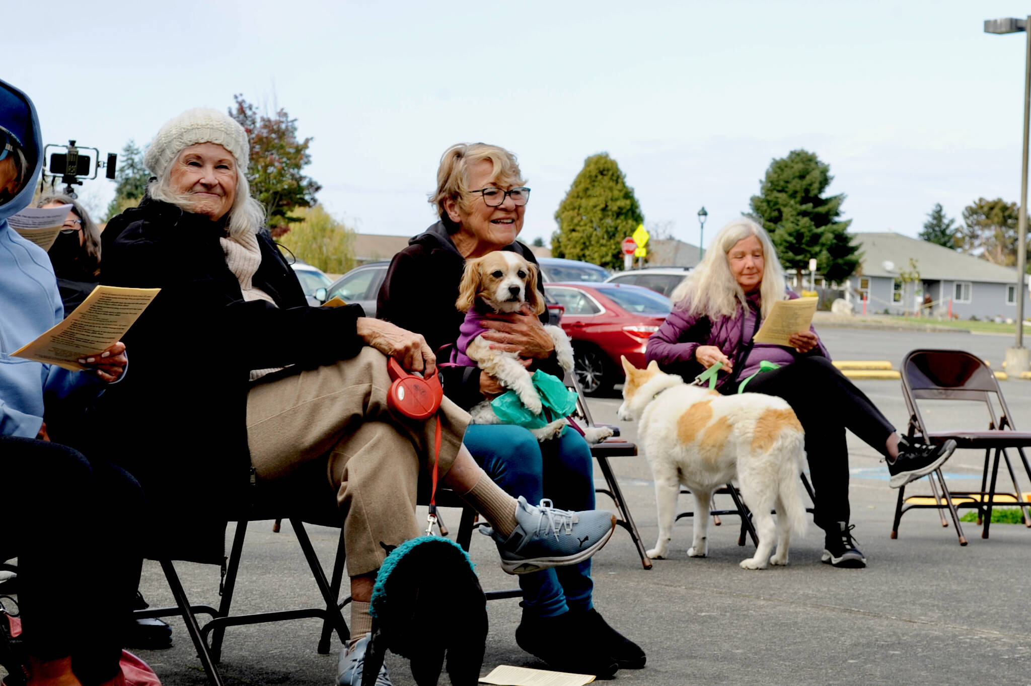 Karen Kremkau with her Cavalier King Charles Spaniel Sadie Mae (middle) with Patti Shoop and her Chihuahua-Terrier Mix, Brina (left green sweater) and Joyce Langenbacher (right) listen to the Blessing of the Animals service. It’s a Protestant tradition focused on embracing our connection with nature. The tradition celebrates the life of St. Francis of Assisi, who believed that all of God’s creations are interconnected and equally blessed.