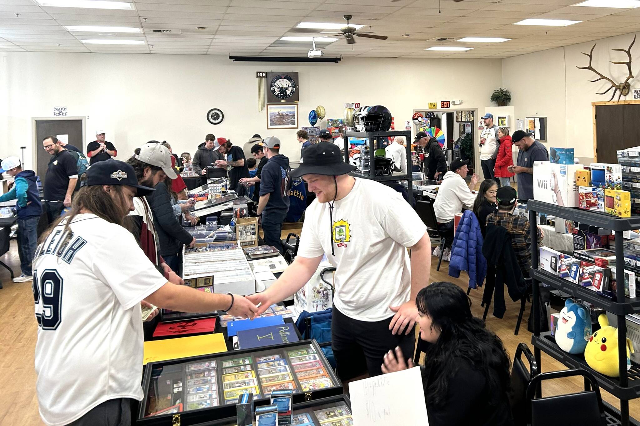 Friends and Sequim High School alums Clancy Catelli and Josh Gahr held their “Card and Pokémon Show” on Nov. 8 in the Sequim Elks Lodge with 30-plus vendors selling a variety of cards, memorabilia and video games for all ages.