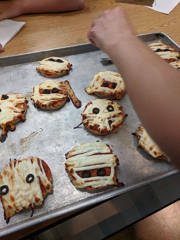 We kicked off the week with dancing to the popular song, “Monster Mash.” Campers made monster s’mores and dirt out of pudding and crushed cookies. They ate them and the mummy pizzas made with string cheese and English muffins.