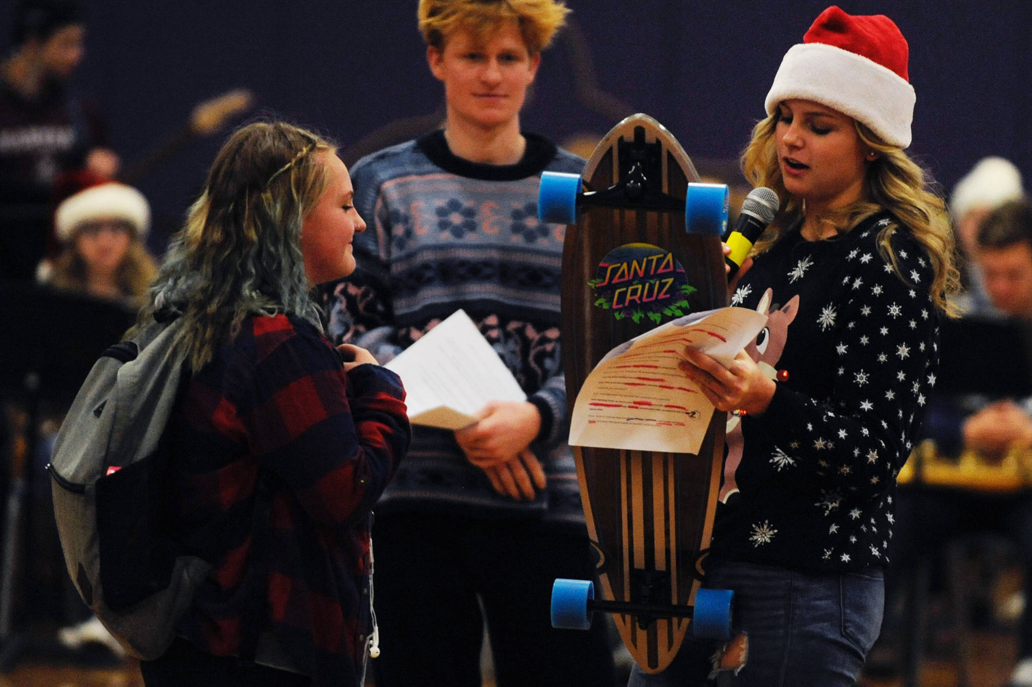 Other standout gifts included Blake Davis receiving a month of guitar lessons, and a full drivers’ education course at NW Drivers School for Ethan Knight. Sean O’Mera also gifted a doughnut and hot cocoa party to his entire second period class.