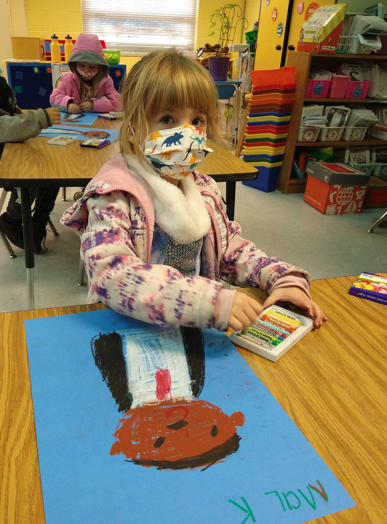 To celebrate Martin Luther King Jr. Day, kindergarteners in Lorrie Corder’s class listened to Dr. King’s “I Have a Dream” speech. They learned about the Montgomery Bus Boycott. They saw how Dr. King and Rosa Parks and the African American community in Montgomery used peaceful means to change unfair rules and laws. Students also took part in a virtual assembly where they brainstormed ways to be kind and caring in class, at home and in the community. Students then created portraits of Dr. King giving his “I Have a Dream” speech in Washington D.C. on Aug. 28, 1963. Their celebration concluded with singing “Freedom, Freedom, let it Ring”, a song created to honor King and his vision of equality and justice. The children are thinking of ways they can make each other and visitors to class feel welcome and included at school.