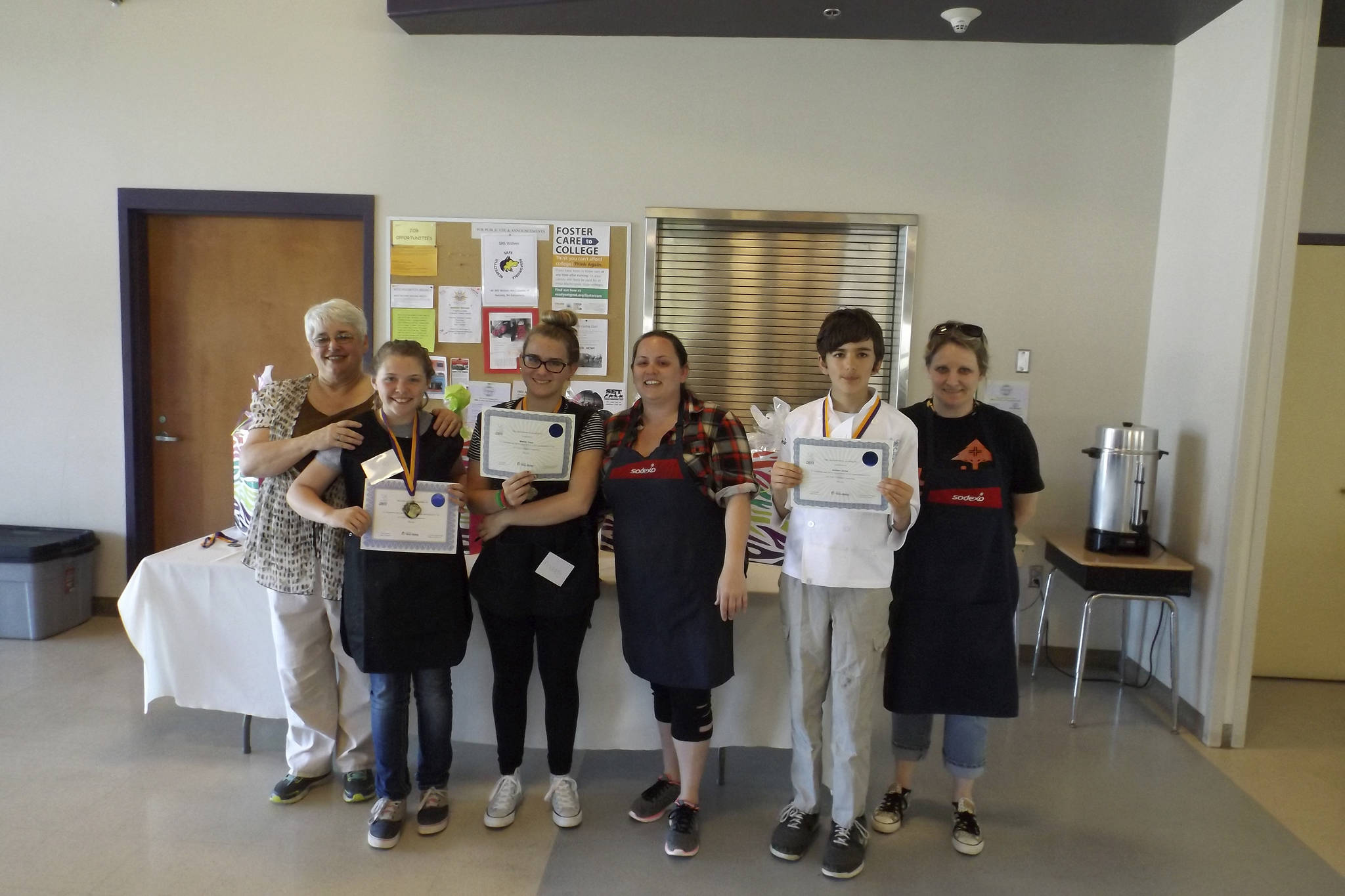 Each young chef had to show their meal and describe how they prepared it, as well as talk about something new they learned that day. Entrees including chicken Alfredo, barbecue prawns with pasta, baked salmon with greens, pork kebabs with grilled veggies, and barbecue beef with fresh fruit salad were presented to families and school staffers to sample! Youths had a great time, along with Sodexo and school staff members who assisted.