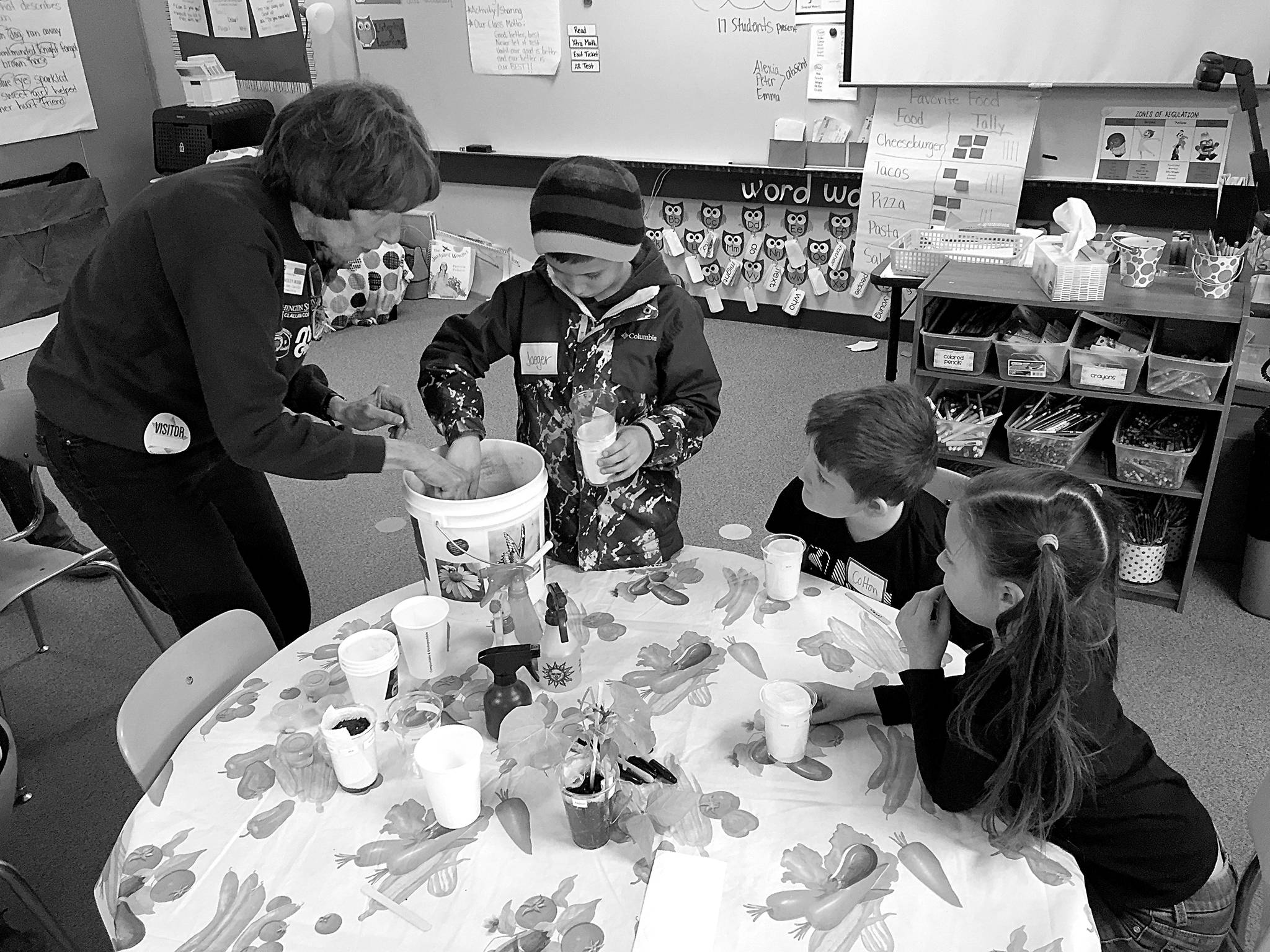 Recently, the Greywolf second-graders got a visit from the Master Gardeners. They learned more about the plant life cycle, and got to meet Herbie — the flower puppet — who is celebrating his 25th birthday! After an interesting presentation, they got to plant their own seeds so that they can watch them sprout roots, and begin to grow.