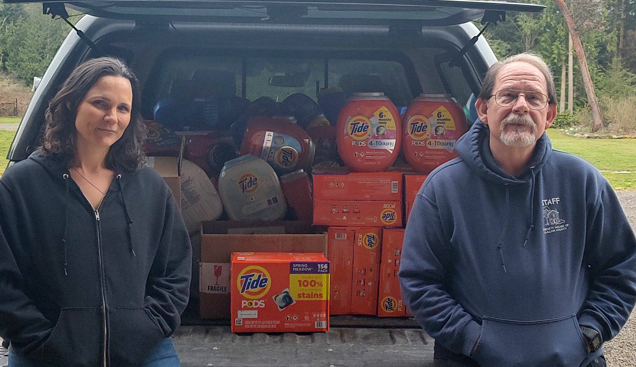 Guests at Serenity House of Clallam County’s shelter are well-supplied for laundry detergent for a few years, thanks to some supportive church students.