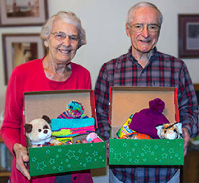 Twila and Owen Guengerich continue a family tradition from West Virginia to Sequim, filling shoebox gifts for Operation Christmas Child. Owen’s cousin in West Virginia continues to create these one-of-a-kind gifts at the age of 104. Submitted photo