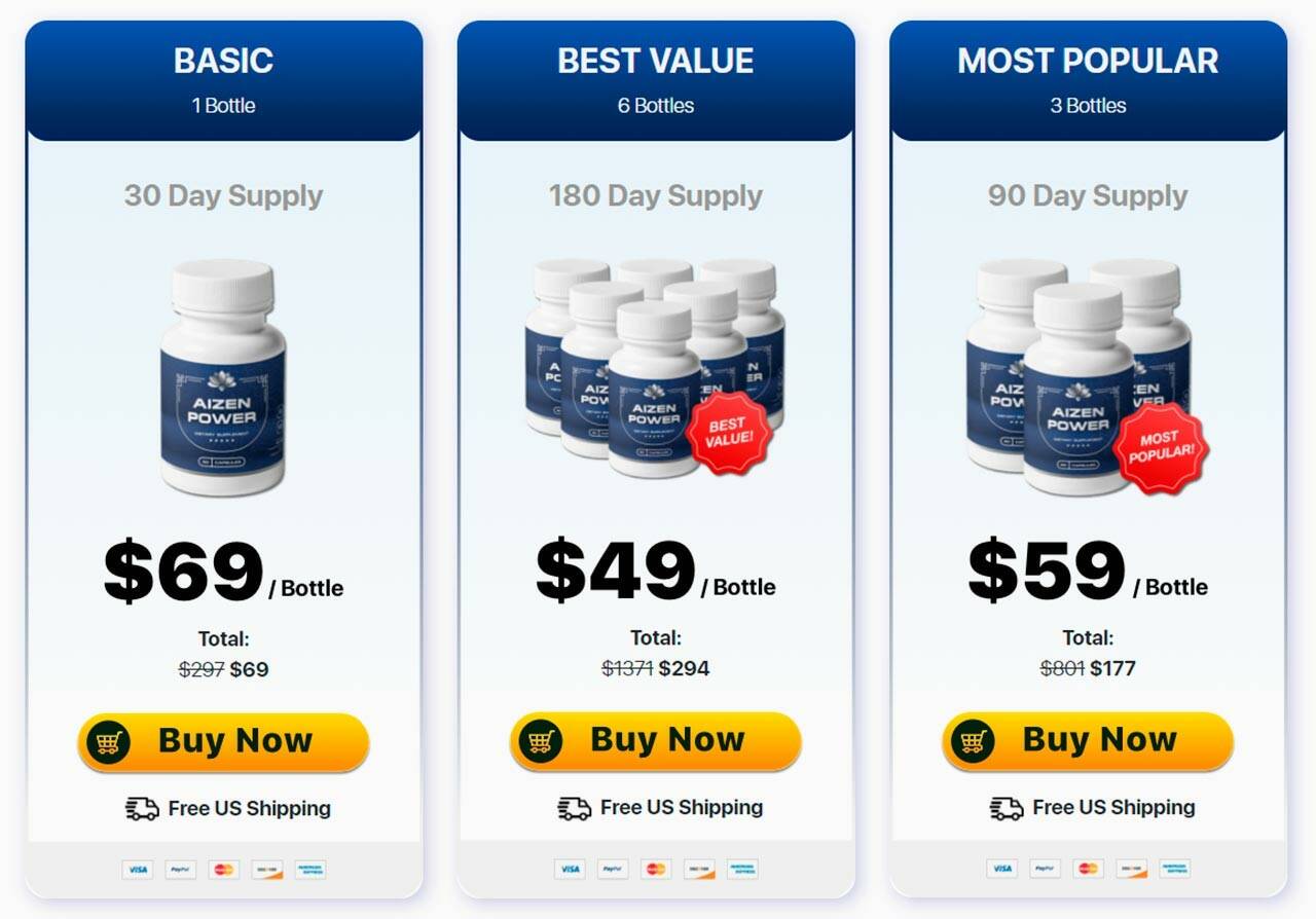 - 3 Bottles of Aizen Power $177 (each bottle is $59) and get it shipped for free in the United States and California.