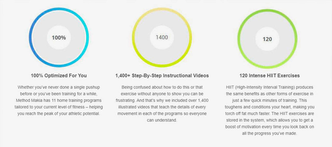 The makers of the Method Makia training program emphasize all of the following features and benefits: