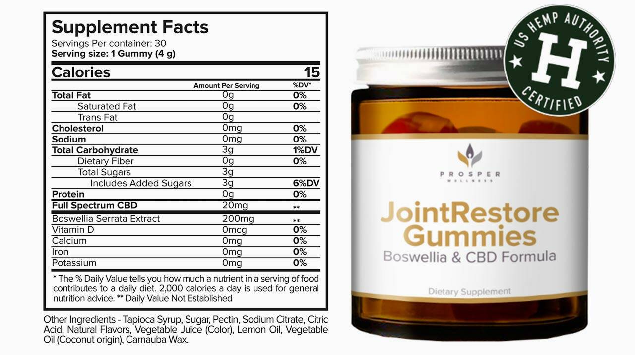 As hinted in its name, JointRestore Gummies have been formulated specifically to aid consumers who are struggling with chronic pain (i.e., joint, knees, and back pains). Rather than sticking to the basics, Prosper Wellness kicked things up a notch by including not only full-spectrum CBD but also a natural herb that has been scientifically proven to support joint health. The idea of combining the cannabinoid with other related ingredients is neither new nor frowned upon, which makes this endeavor quite refreshing. Without further ado, let’s investigate the ingredients list.