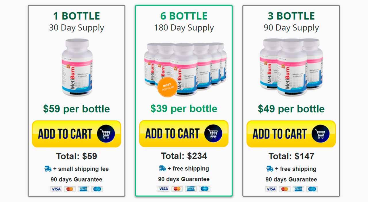 MetiBurn is available in three packages with its pricing structure as follows: