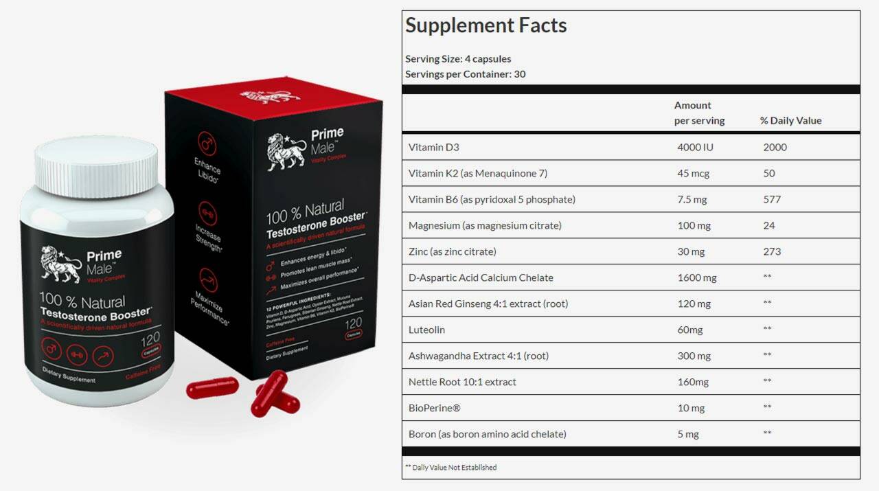 Prime Male testosterone booster is manufactured with not one or two but twelve nutrients which are clinically proven to increase testosterone levels naturally with no side effects. These ingredients include: