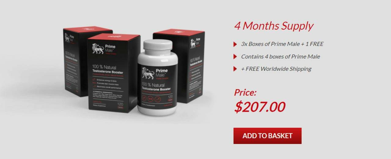- Four months’ supply of Prime Male supplement costing $207 with free worldwide shipping