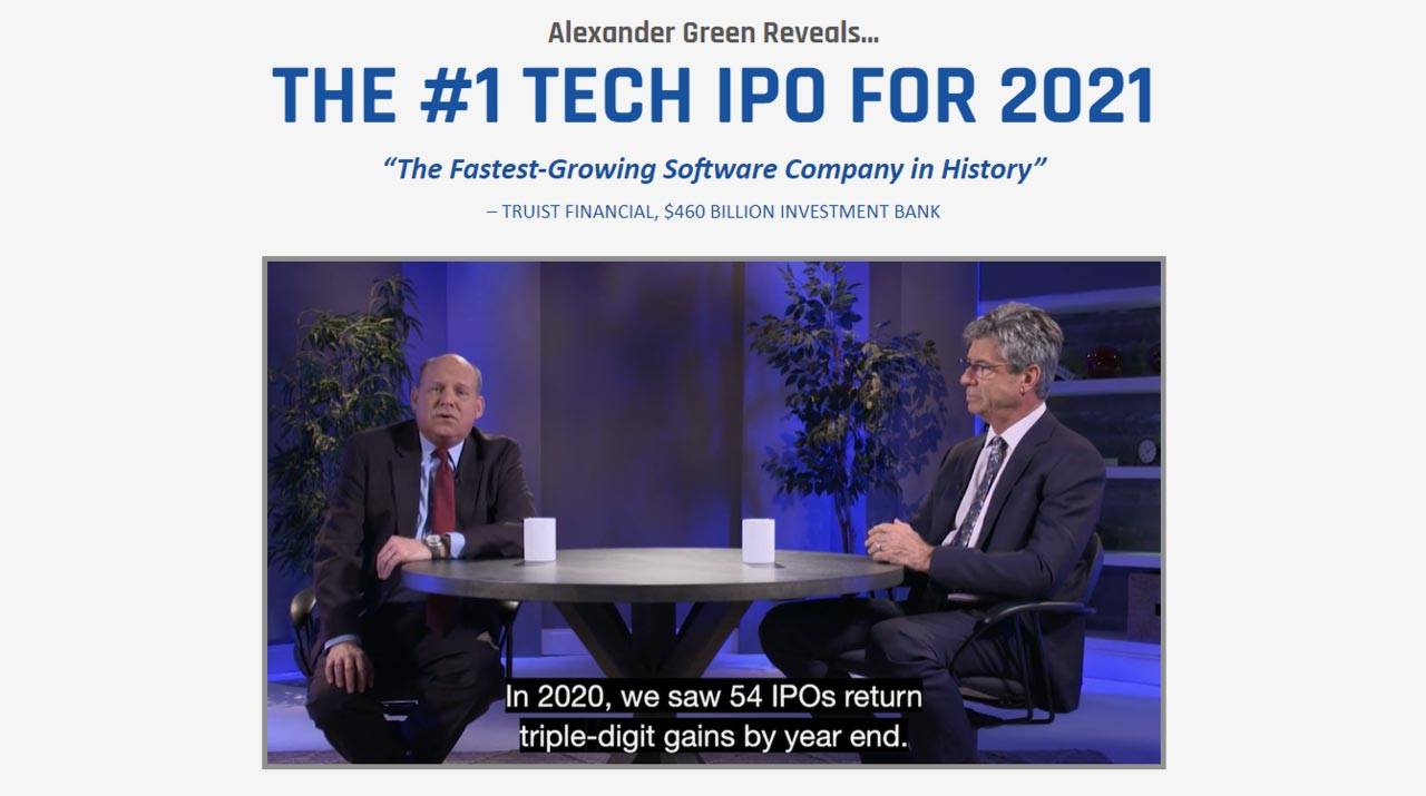 Alexander Green’s #1 Tech IPO for 2021: Alex has spotted a tech company that he believes will rise enormously over the next decade. He claims it’s one of the best investment opportunities he has ever spotted. He also claims to have identified a backdoor way of investing in the stock for as little as $5.