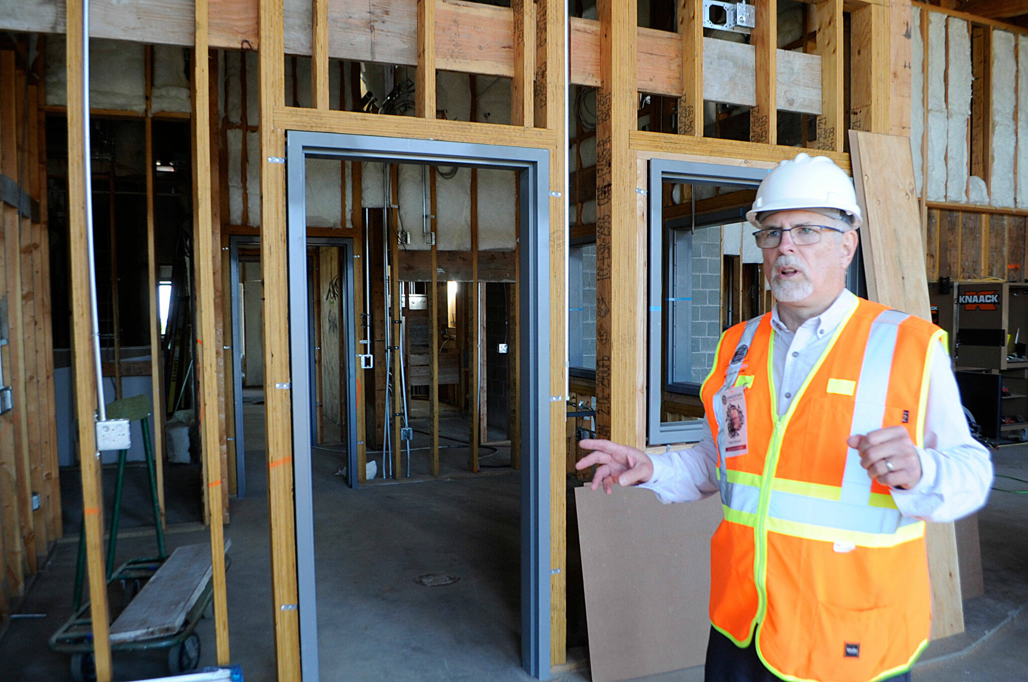 Safety is a major concern for leaders with the Jamestown S’Klallam Tribe, said Brent Simcosky, director of tribal health services, standing next to the Jamestown Healing Clinic’s future security offices in August, as the tribe continues construction of its medication-assisted treatment (MAT) facility. “We understand people’s concerns. That’s why we agreed to all the mitigation,” he said. “We want to cause people less stress and successfully help people without hurting the community.”
