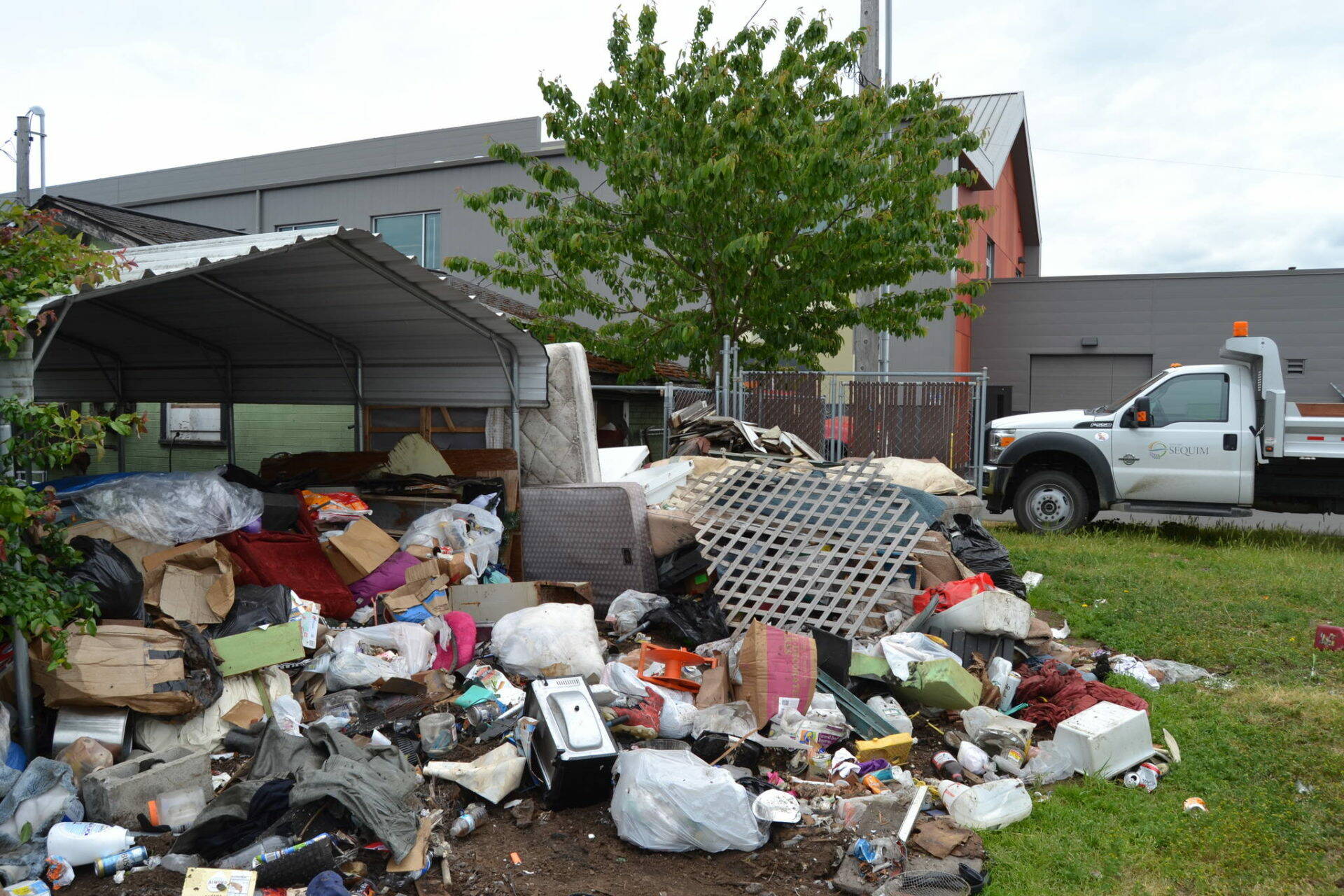 Sequim Gazette file photo by Matthew Nash/ In 2018, volunteers removed 12 truck loads of debris from three lots adjacent to the Sequim Civic Center.