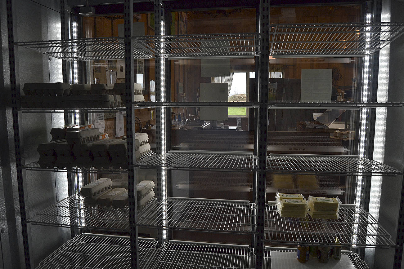 Store shelves in the Dungeness Valley Creamery currently don’t hold raw milk due to one sample coming back with E. coli in testing earlier this month. Creamery owners Ryan and Sarah McCarthey said they have product available right away once they’re given the OK from state health officials. Sequim Gazette photo by Matthew Nash