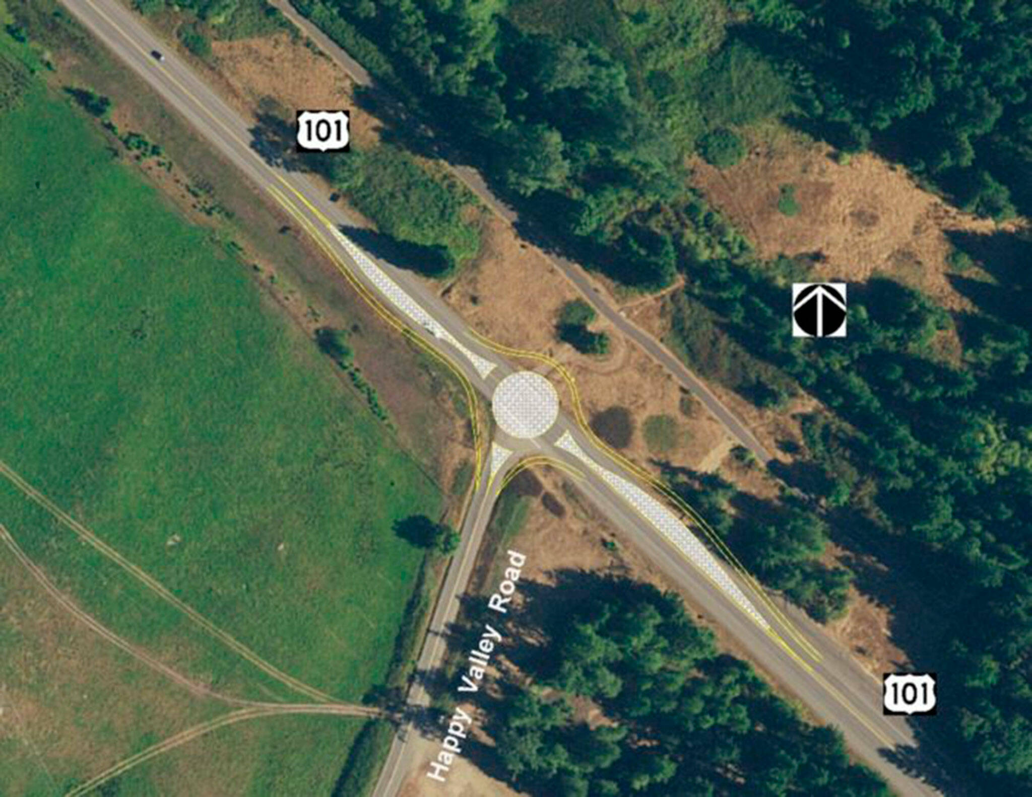 This would add a three-way roundabout at the Happy Valley Road and highway intersection.