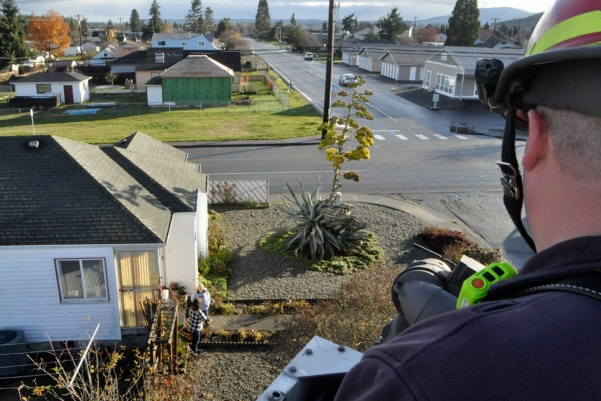 On Friday, Dec. 8, Clallam County Fire District 3 firefighters used a ladder truck to help measure the plant at about 22 feet tall.