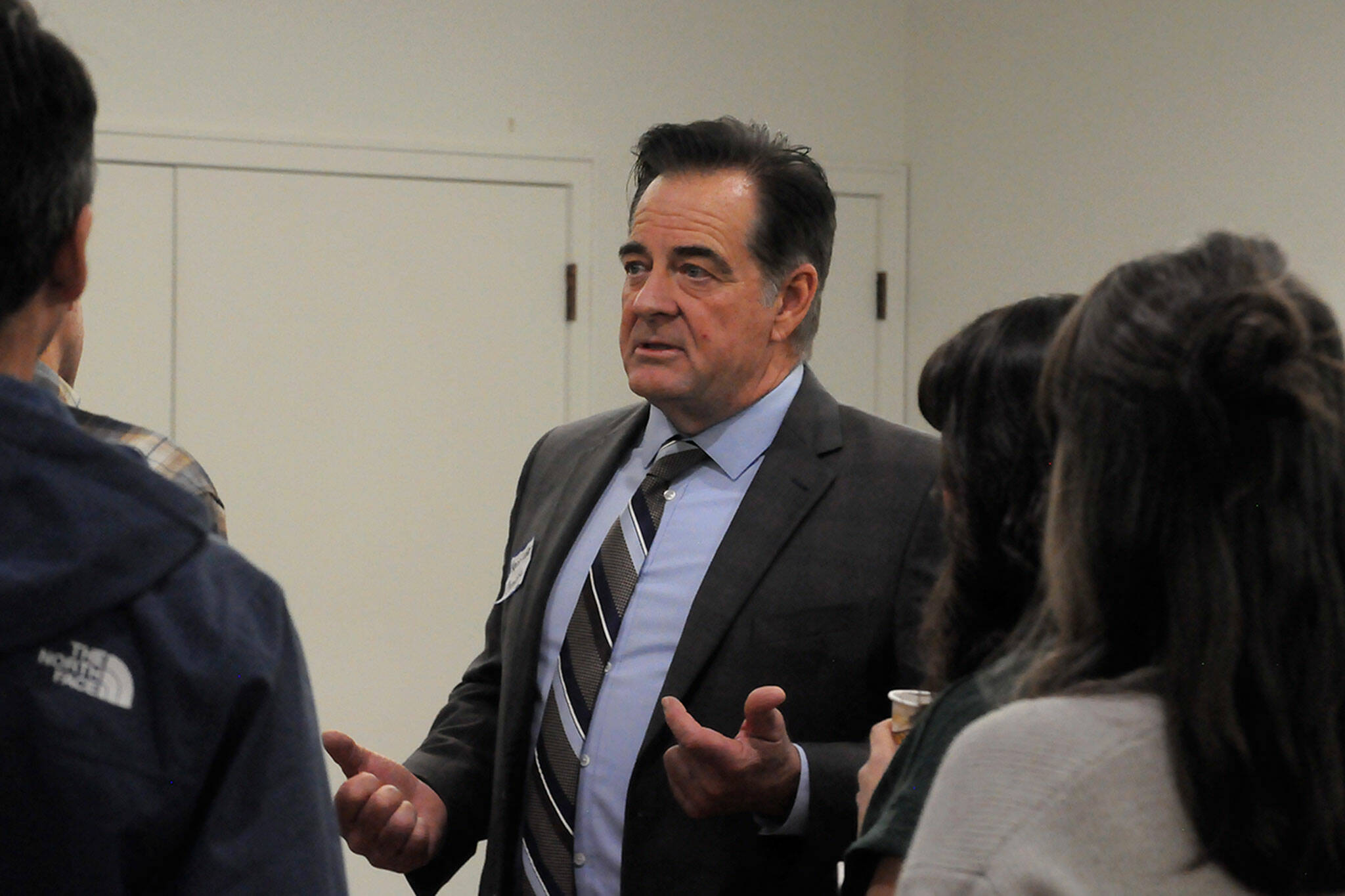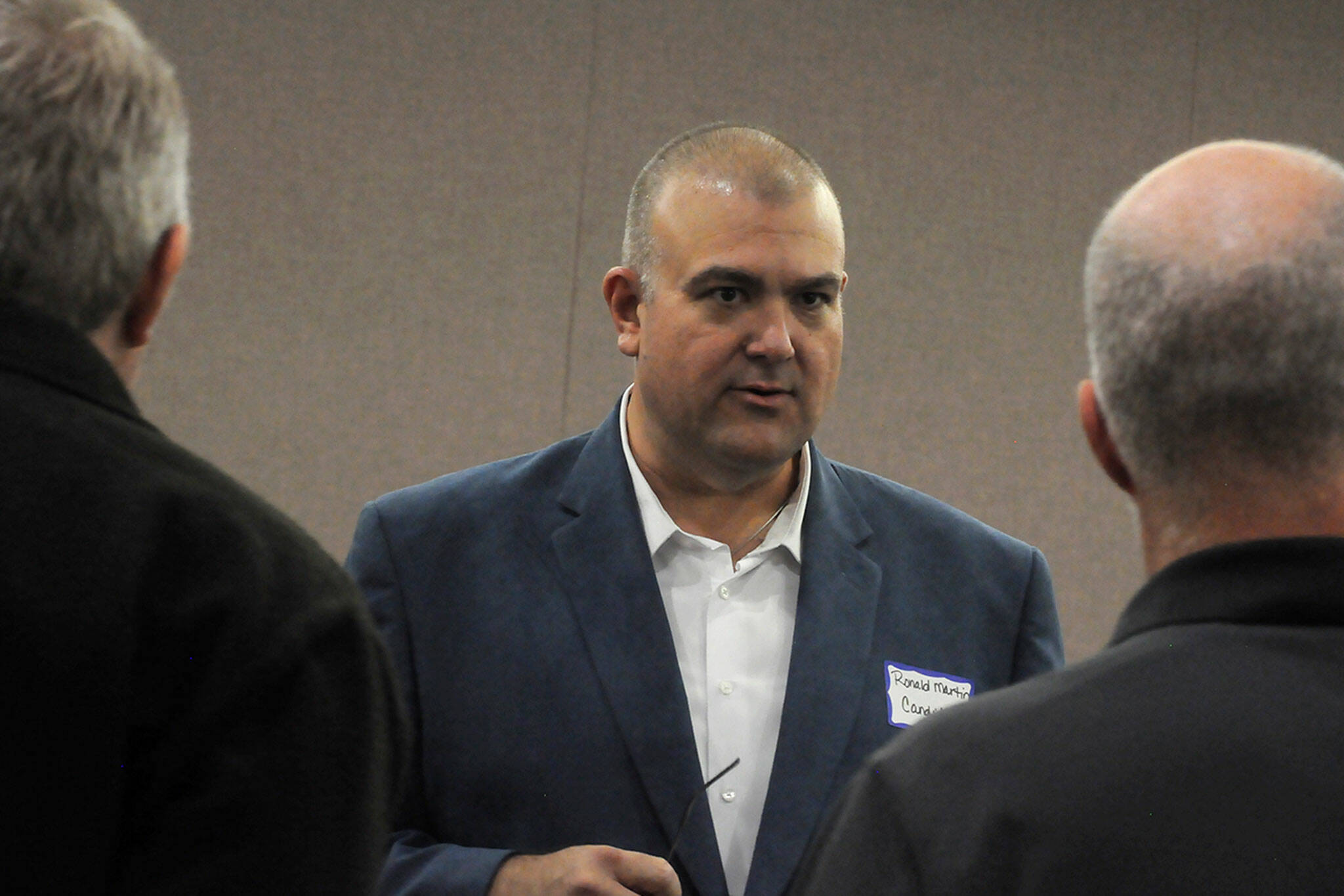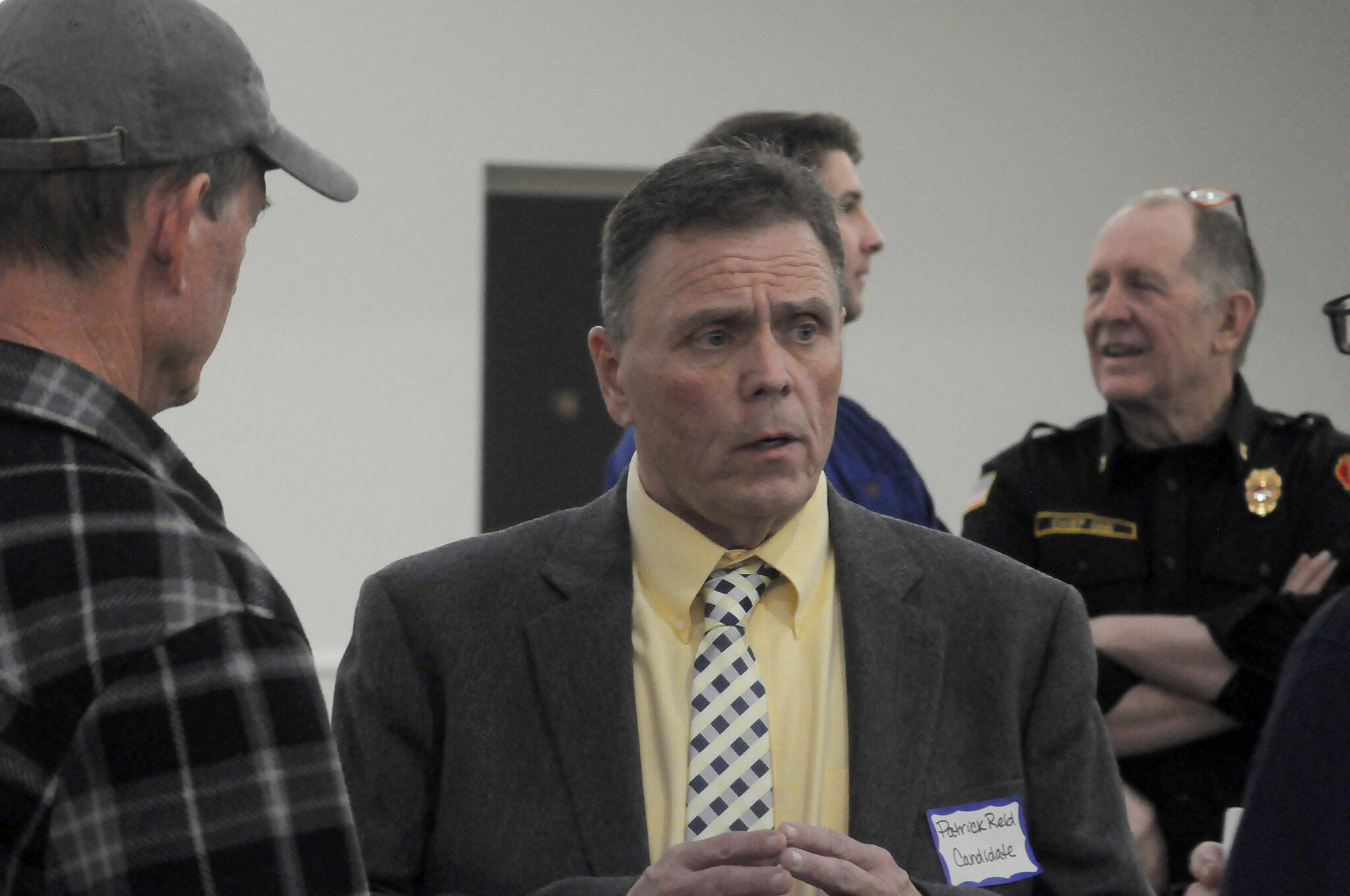 The district’s four finalists gathered on Monday, Nov. 13, for two hours in Sunland’s ballroom north of Sequim for a meet-and-greet with 50-plus people, including career and volunteer firefighters, Community Emergency Response Team (CERT) members, and various community leaders.