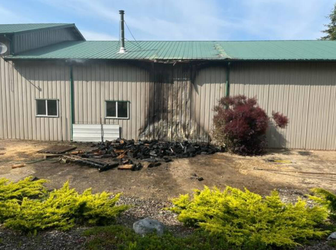 A volunteer firefighter was first to arrive on scene and reported that an exterior fire, a wood pile, was on fire and had extended into the large,36-foot-by-60-foot shop with attached living quarters, Clallam County Fire District 3 representatives said.