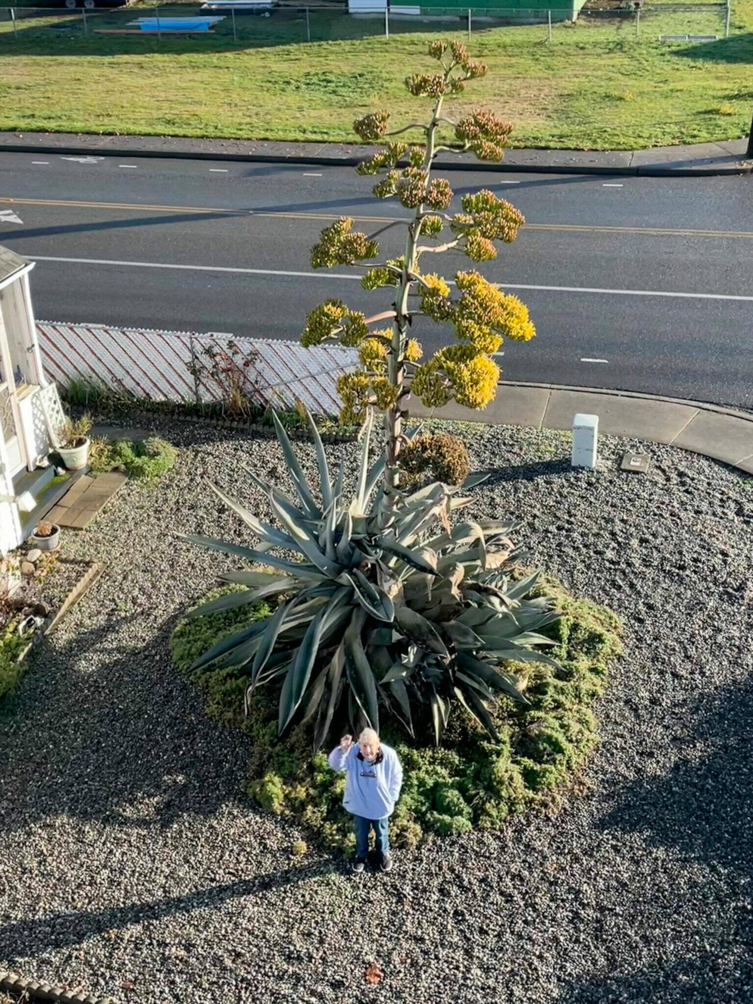 The bloom meant the end of the plant’s life cycle, but several smaller agave plants were discovered and recovered by local Master Gardeners who helped remove the larger plant in November 2024.