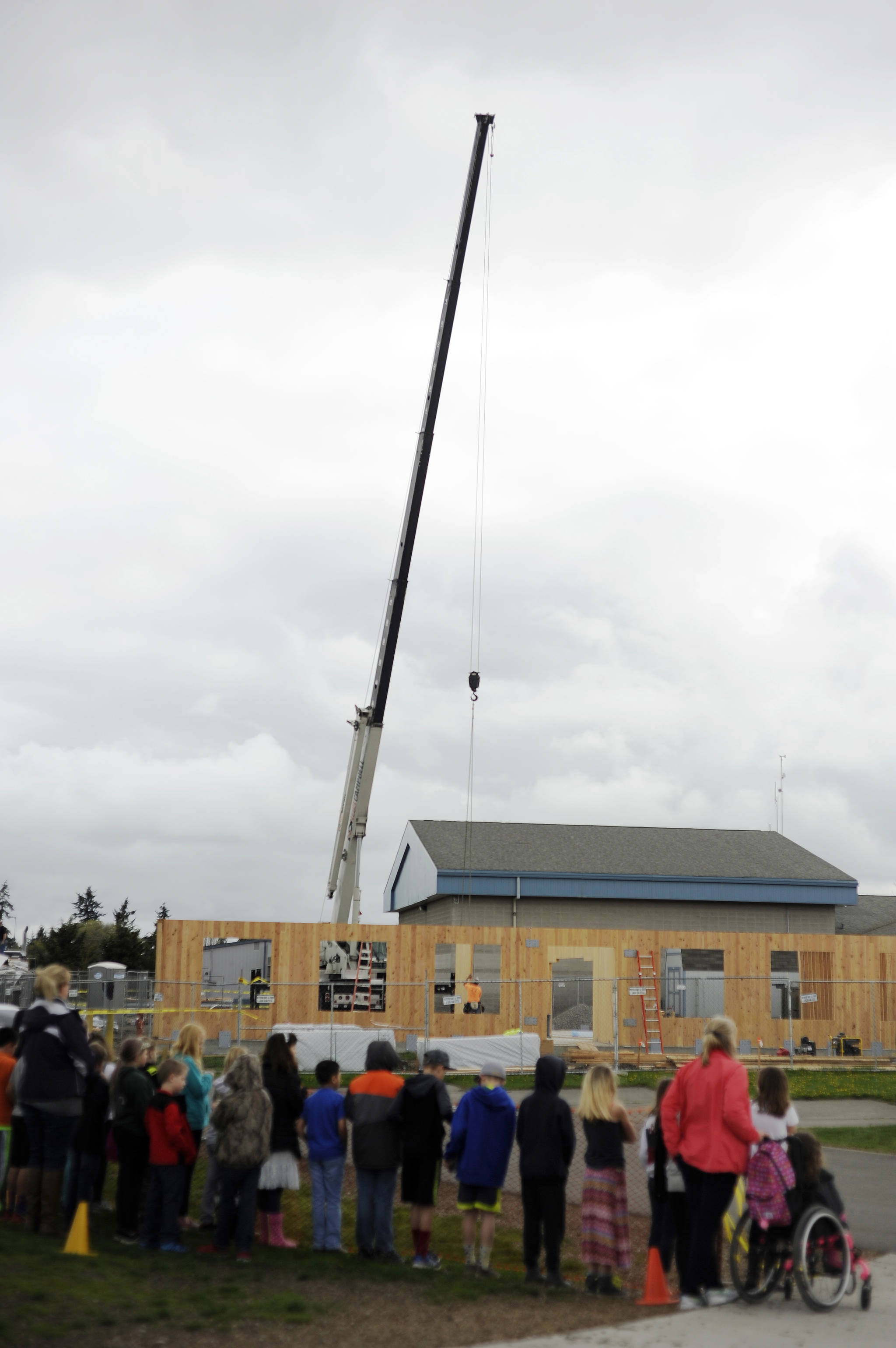 “It’s most exciting for us because it gives us some space to house kids,” she said. “For the kids themselves, it’s very common at recess to see kids lined up at the fence watching, they’re fascinated by it.”