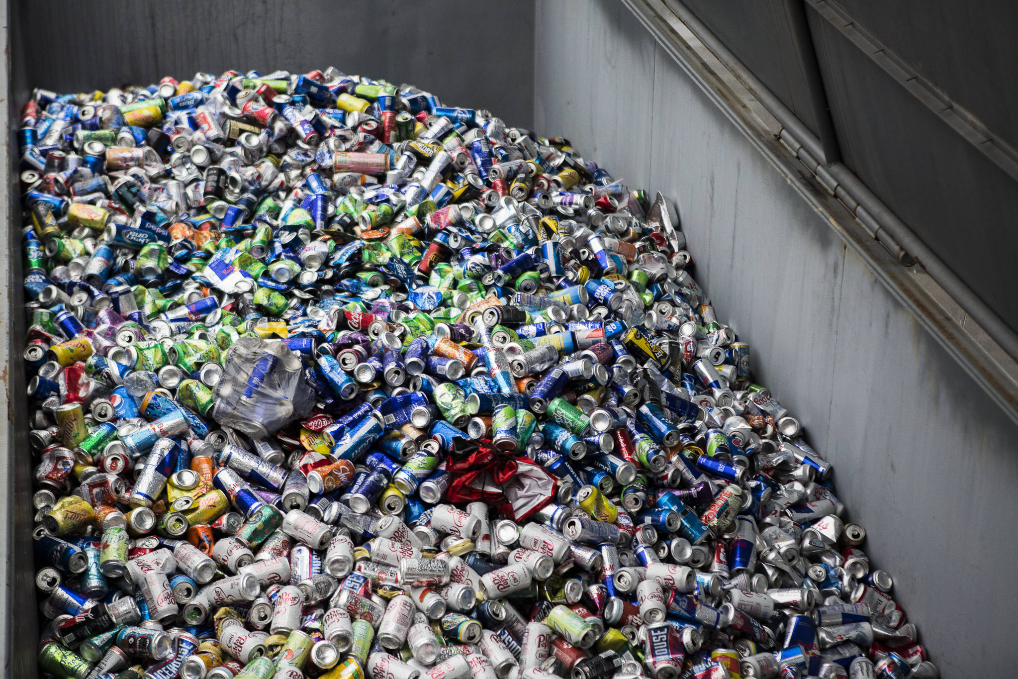 Aluminum cans fill a large recycling container at the Airport Road Recycling & Transfer Station on Nov. 24 in Everett. Photo by Olivia Vanni/The Herald (Everett)