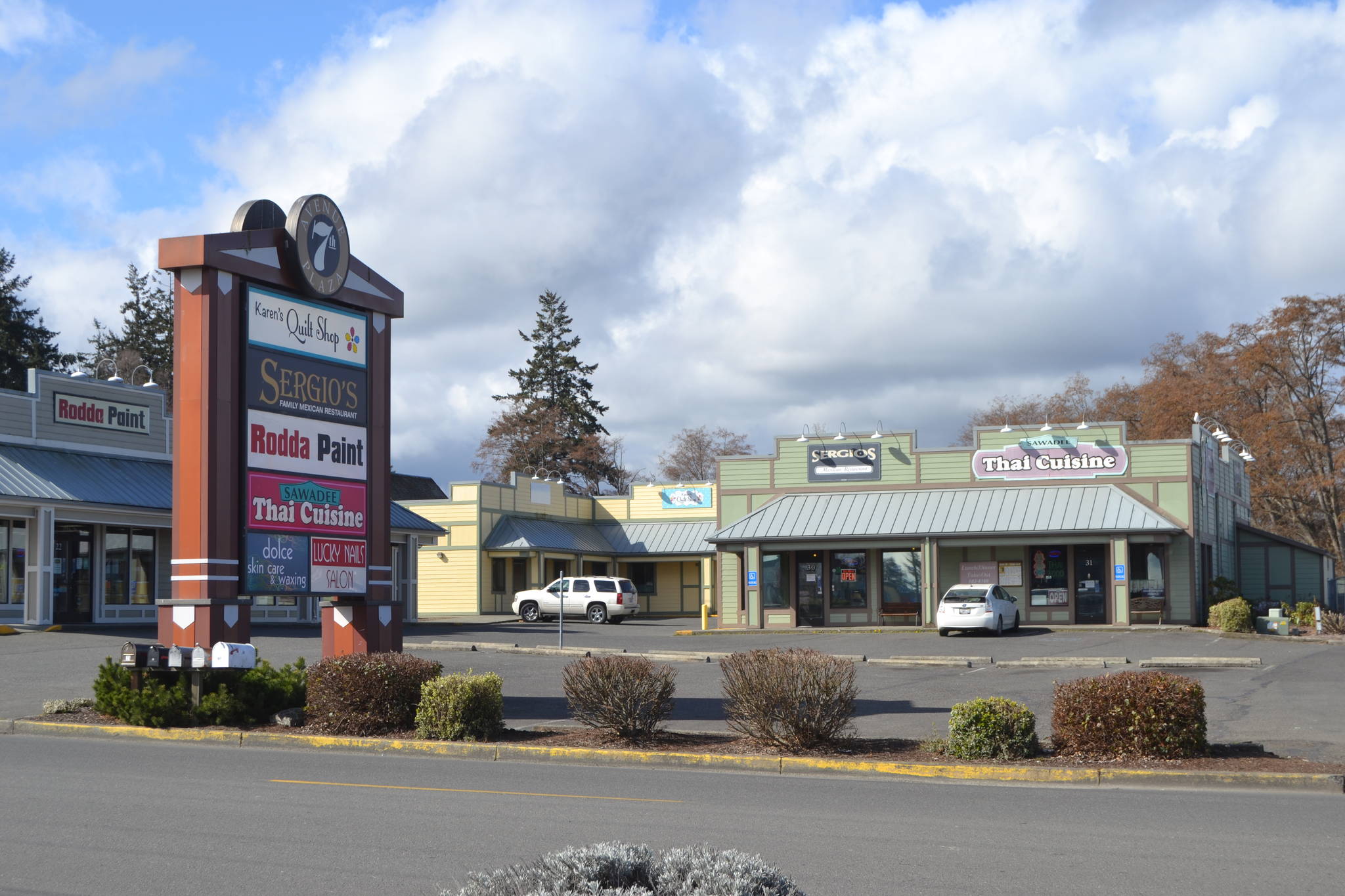The 22 businesses between McNish’s properties, include: Mariner Cafe, Harrison’s Footwear, Properties by Landmark, Inc., Good Impressions Cleaners and Laundry, Sunny Spa LLC., Sun Valley Realty, The Gateway Church of Sequim, Sunny Farms Supplements, Sweet Spot Sequim Inc. (Frozen Yogurt), Strongpoints Fitness LLC., Full Moon Candle Company, Morning Star Skin Care and Waxing, Hair by Chris Glas, Olympic Area Agency on Aging, Sequim Community Broadcasting (KSQM 91.5 FM), Oak Tree Fine Furniture (5th Avenue Furniture), Rodda Paint Company, Lucky Nail Salon, Sequim Sewing Center (Karen’s Quilt Shop), Sergio’s Mexican Restaurant Inc, Sawadee Thai Cuisine and JCPenneys.