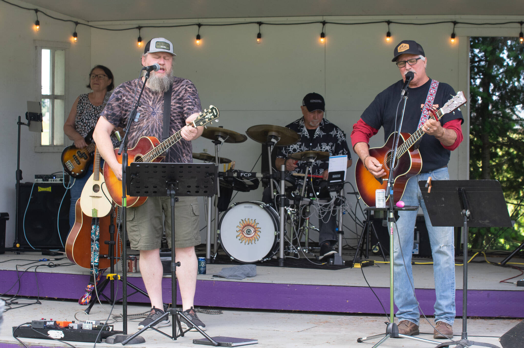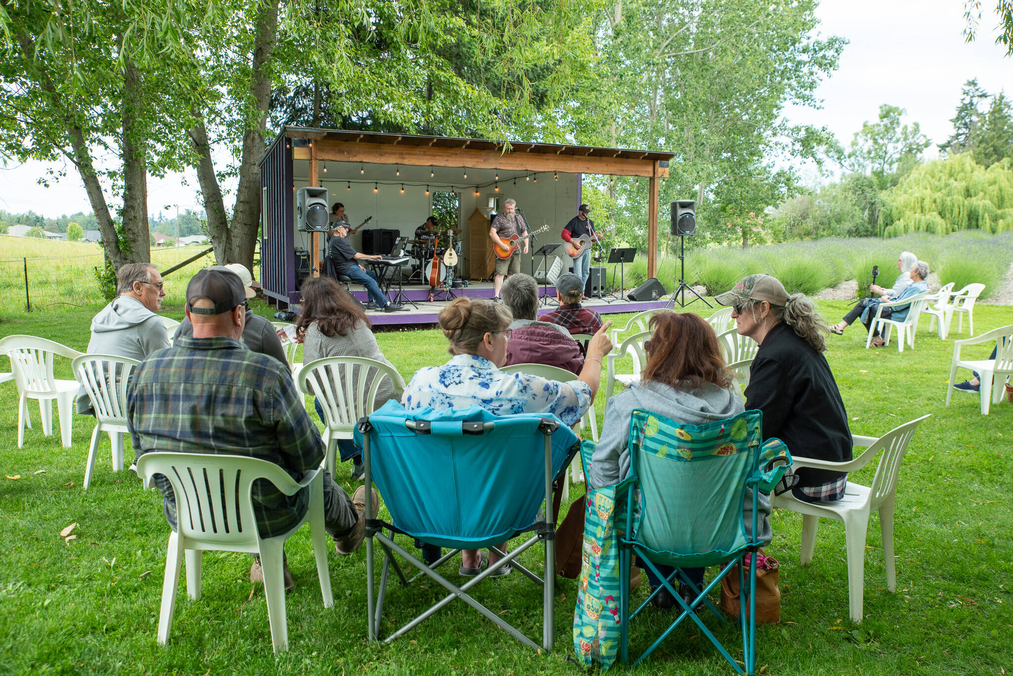 Sequim Gazette photo by Emily Matthiessen/ Live music by local band Just Foolin’ Around (JFA), raffles and prizes were part of Saturday’s Barks and Blooms dog adoption event at Purple Haze Lavender Farm on behalf of Rise Rescue Alliance.