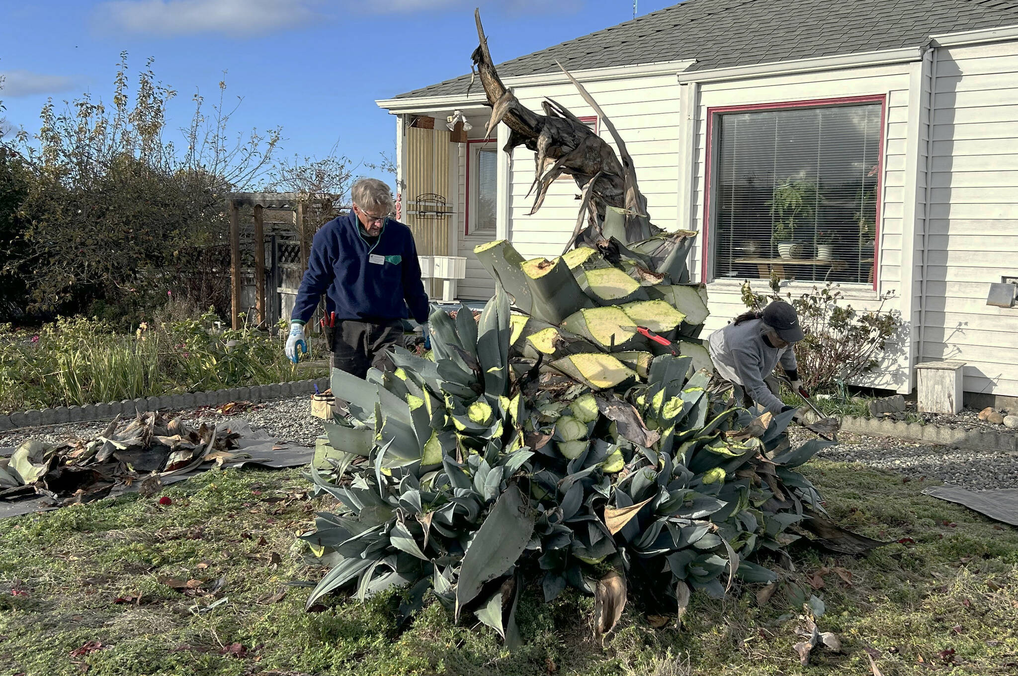 On Friday, Nov. 15, she and family members watched from the window as Clallam County Master Gardener volunteers meticulously cut and removed the massive agave.