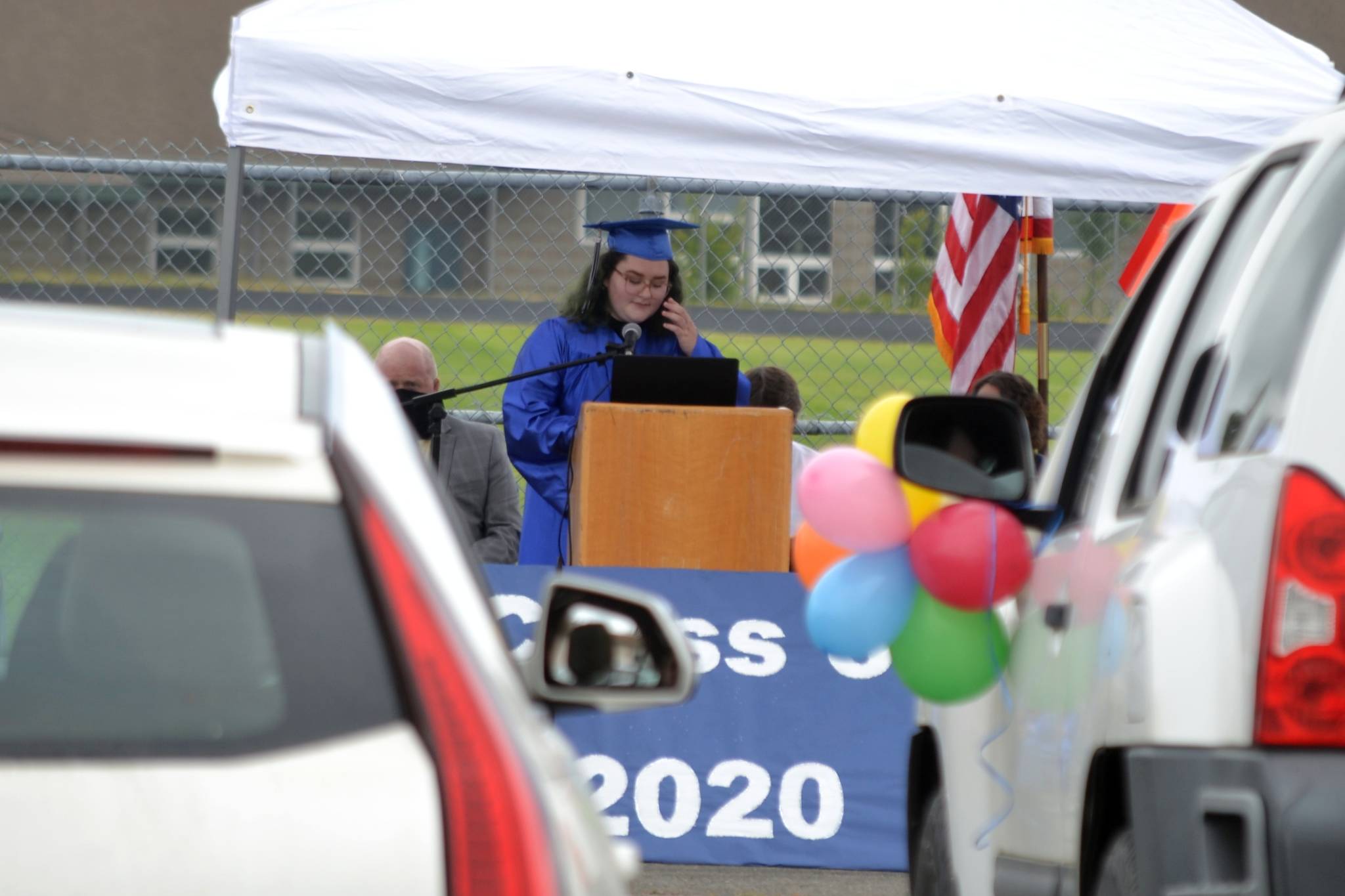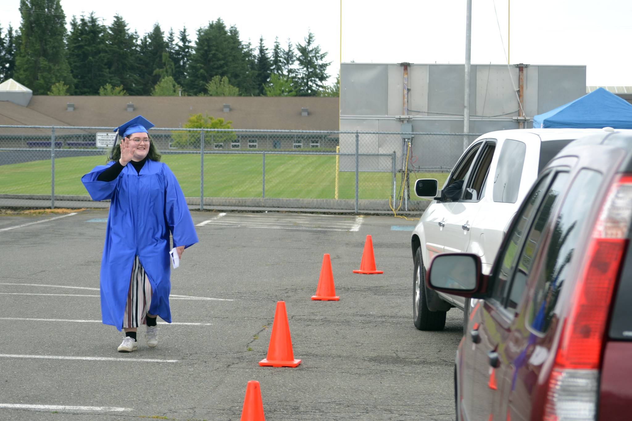 As family and friends watched and listened in from their cars, six Olympic Peninsula Academy high school graduates-to-be held a special graduation ceremony from the Sequim School District’s stadium parking lot on June 12.