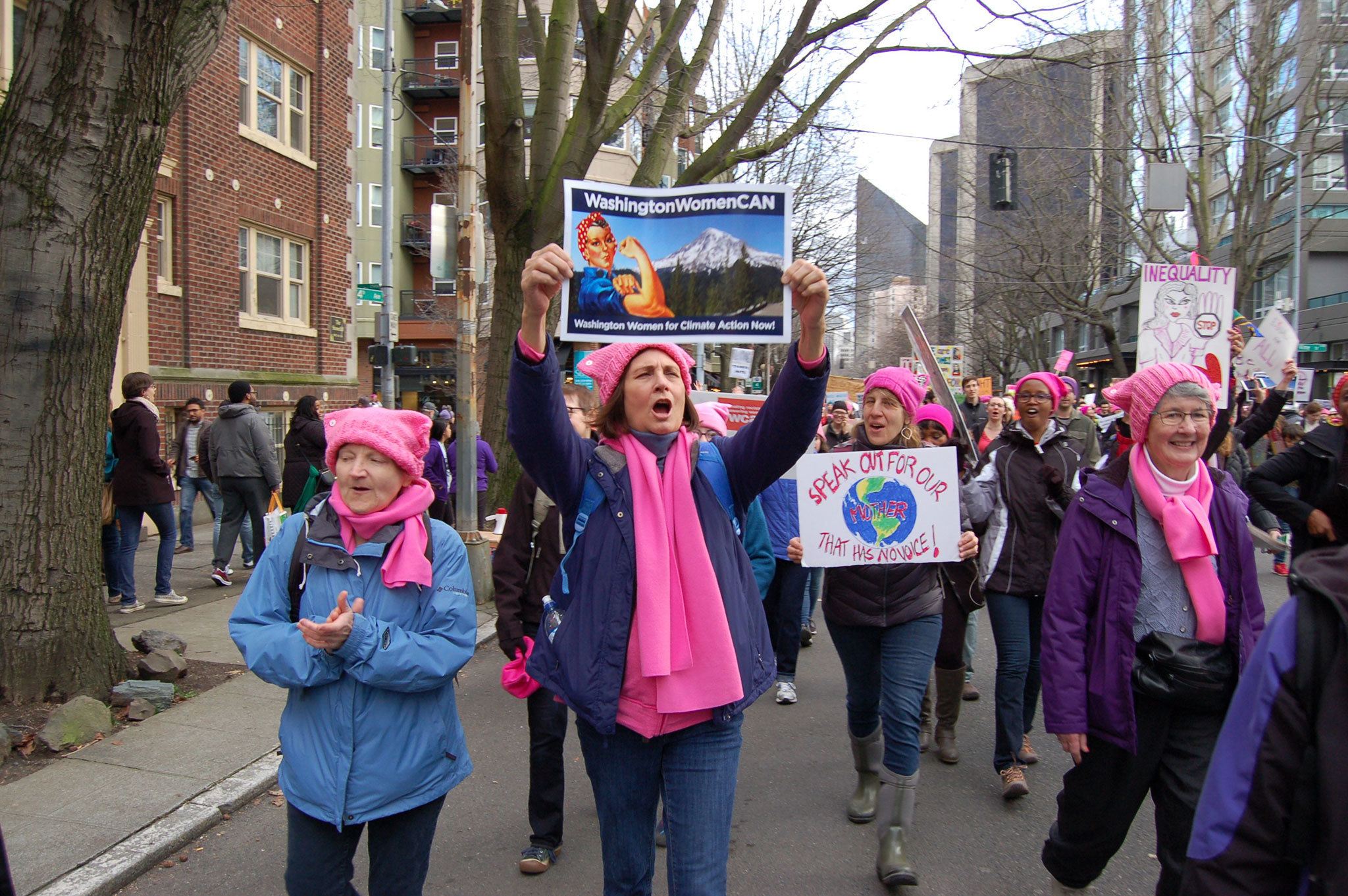 Marchers sang a variety of chants as they walked the streets of Seattle, from “no rape culture!” to “love trumps hate!”