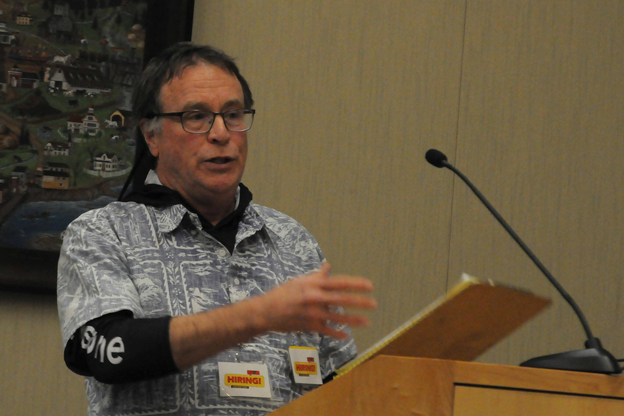 About 100 people showed up to show their support for the CTE project at the Sequim Civic Center on Jan. 23, and many were wearing “CTE” name tags provided by Kaye Richardson, president of the Sequim Sunrise Rotary.