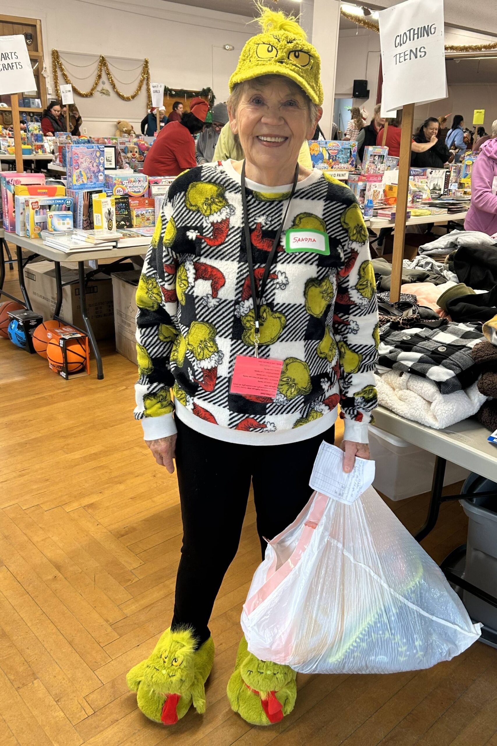 Toys, clothes, games, books, blankets, quilts and bikes filled the main hall of the Sequim Prairie Grange for the event sponsored by nonprofit, all-volunteer Sequim Community Aid.