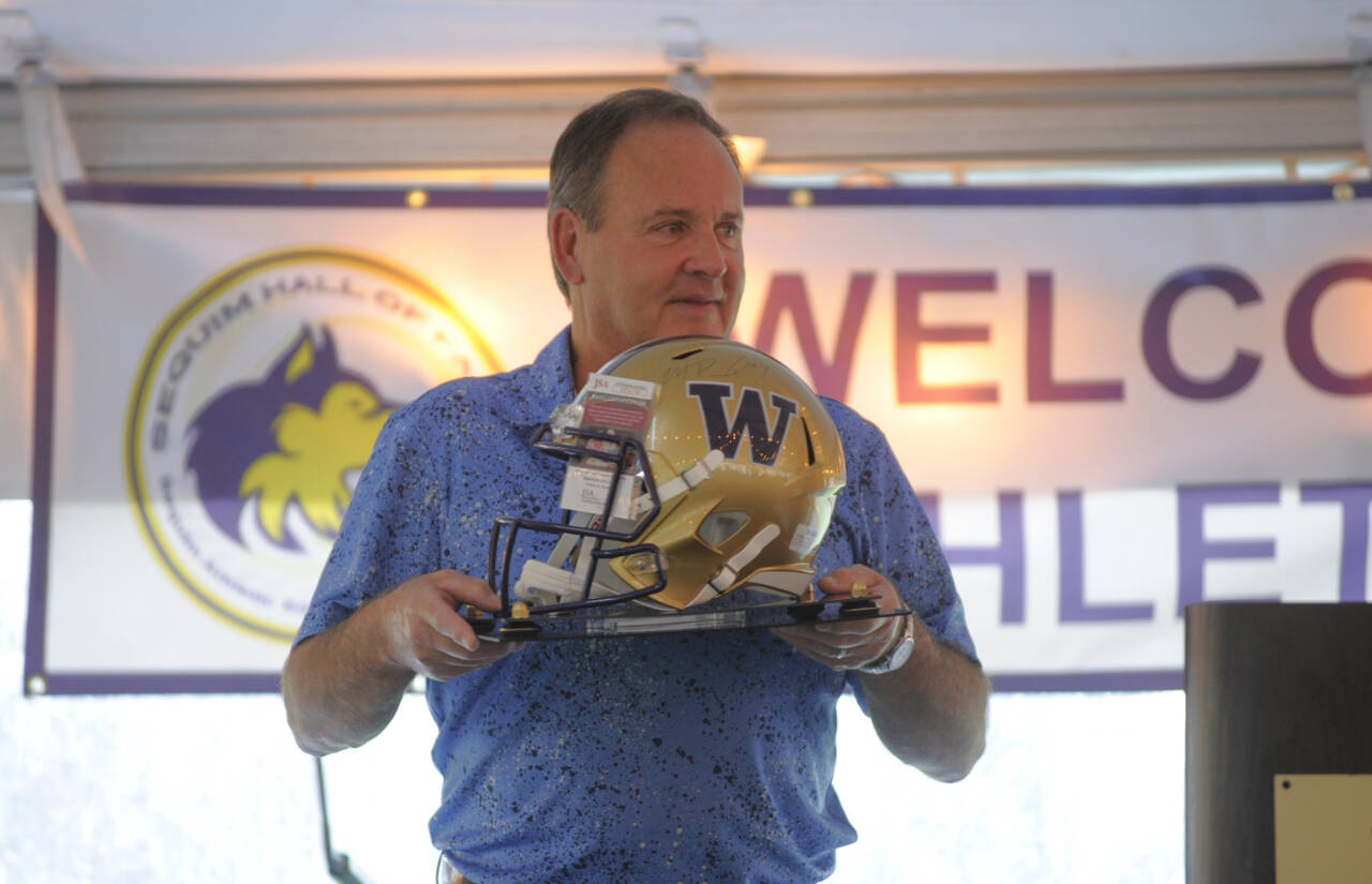 J.D. Angiuli, one of 21 members on the Sequim High School Hall of Fame board, emceed the event that included a live and silent auction and catered dinner, with a slideshow of athletes along with some game footage from a 1950’s-era SHS football game. Funds raised go to support Sequim High School sports, band and cheerleader programs, Hall representatives noted.