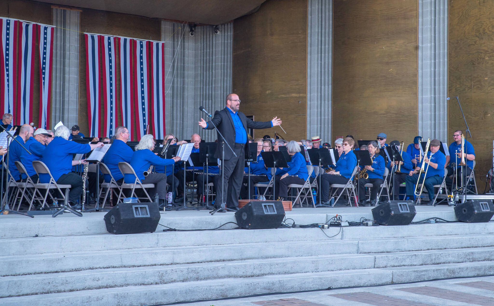 Sequim Gazette Photo by Emily Matthiessen/ Five bands played for those attending the Independence Day celebration at Carrie Blake Community Park in Sequim, beginning with the Sequim City Band directed by Tyler Benedict.