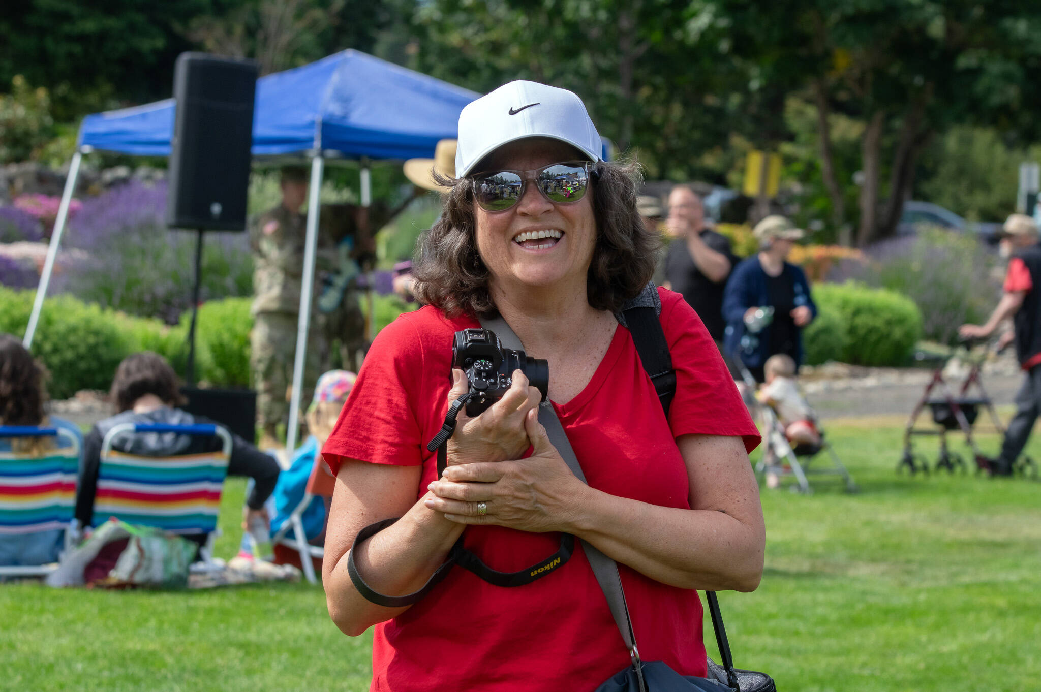 Sequim Gazette photo by Emily Matthiessen/ Patsene Dashiell, marketing coordinator for the City of Sequim, takes photos during the city’s Independence Day Celebration.