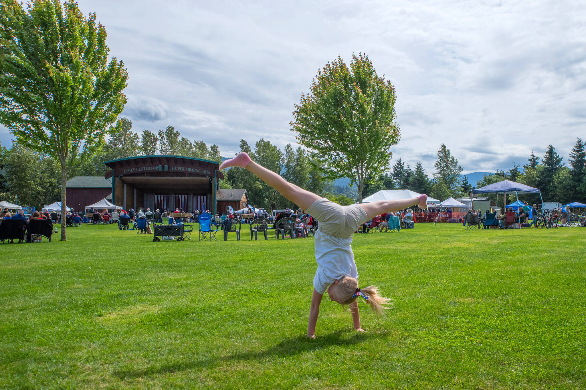 Sequim Gazette photo by Emily Matthiessen/ Maddie Parker, 10, turns cartwheels at Carrie Blake Community Park during the Independence Day celebration on Friday.