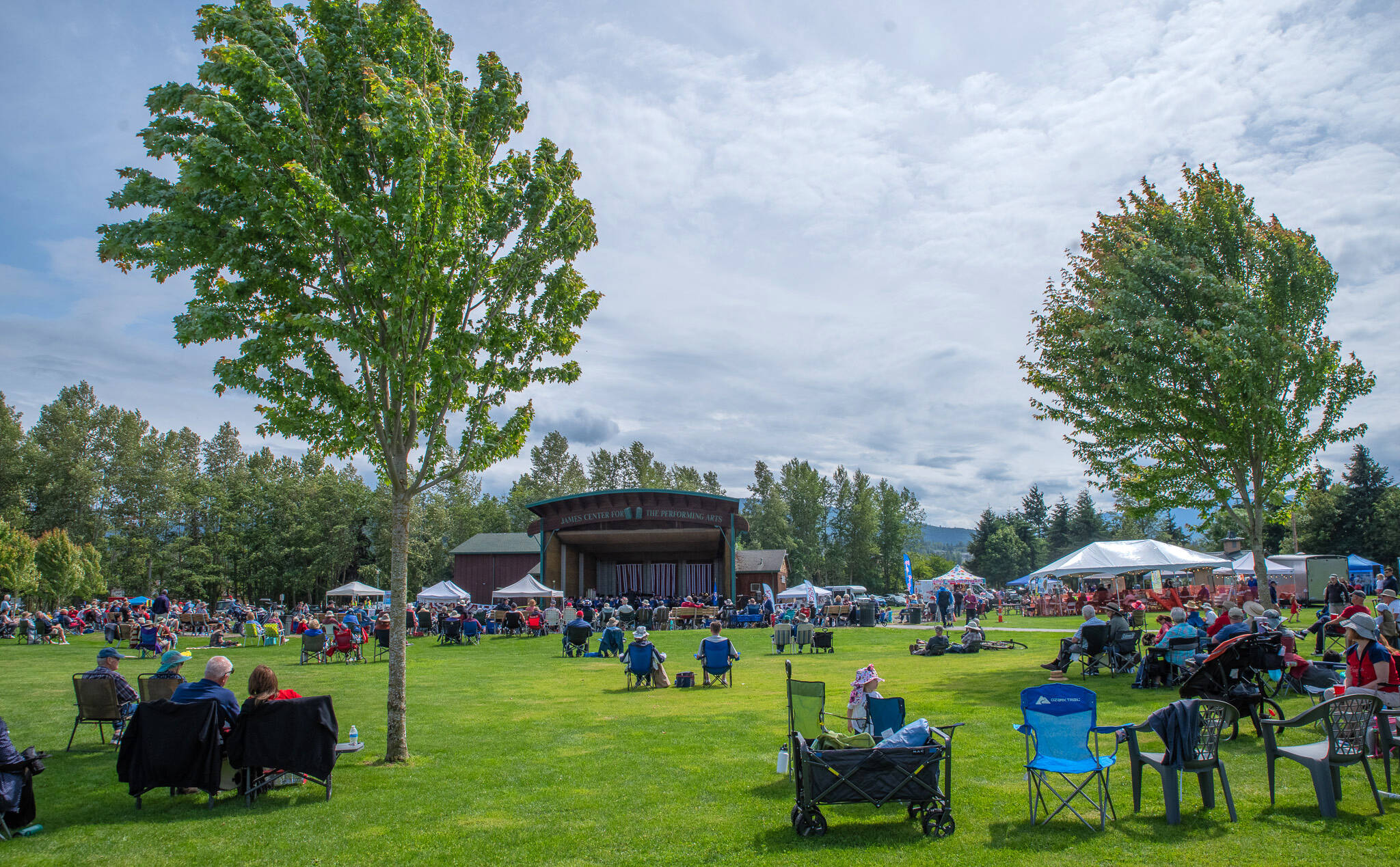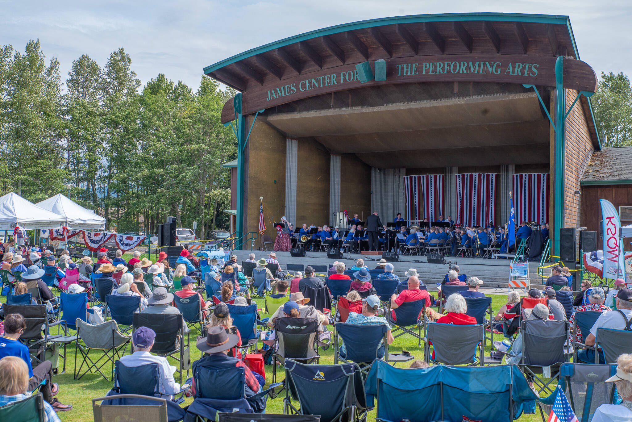 Sequim Gazette photo by Emily Matthiessen/ A large crowd gathered to listen to the Sequim City Band play patriotic songs on Independence Day at the James Center for the Performing Arts in Carrie Blake Community Park.